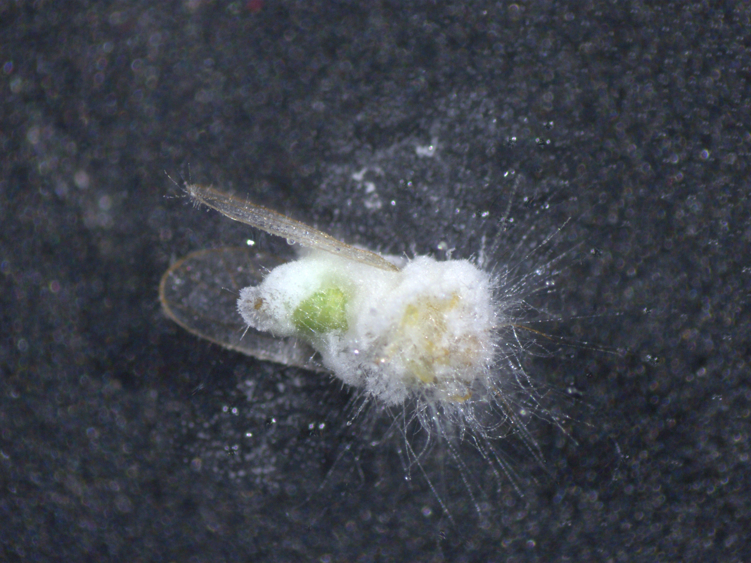 Deshalb kommt dem Fund der neuen Pilzart, die spezifisch Birnenblattsauger befällt, eine so große Bedeutung zu, denn der Pilz kann als Ausgangsstoff für neue umweltfreundliche Pflanzenschutzmittel auf natürlicher Basis dienen. „Erste Untersuchungen haben ergeben, dass der Pilz auch andere Blattsaugerarten befallen kann“, berichtet Dr. Jürgen Gross vom Julius Kühn-Institut in Dossenheim. Gross ist einer der deutschen Koautoren der Publikation zum Pandora-Pilz. Er forscht schon lange zu Psylliden und den von ihnen übertragenen Phytoplasmosen. Der Wissenschaftler sieht in der Pilzart großes Potenzial für den biologischen Pflanzenschutz. Er möchte nun untersuchen, wie man die Pilzsporen anreichern und so verpacken kann, dass sie sich in Obstanlagen ausbringen lassen. „Wir sind dabei, eine Formulierung zu entwickeln, die dafür sorgt, dass der Birnenblattsauger mit dem Pilz in Kontakt kommt und vom ihm besiedelt wird“, erklärt Gross den Ansatz. „Dazu werden wir auch Lockstoffe für den Birnenblattsauger in die Formulierung einfügen“. Dass der Pilzbefall zum Tod der Insekten führt, konnte im Labor bereits gezeigt werden (siehe Abbildung).