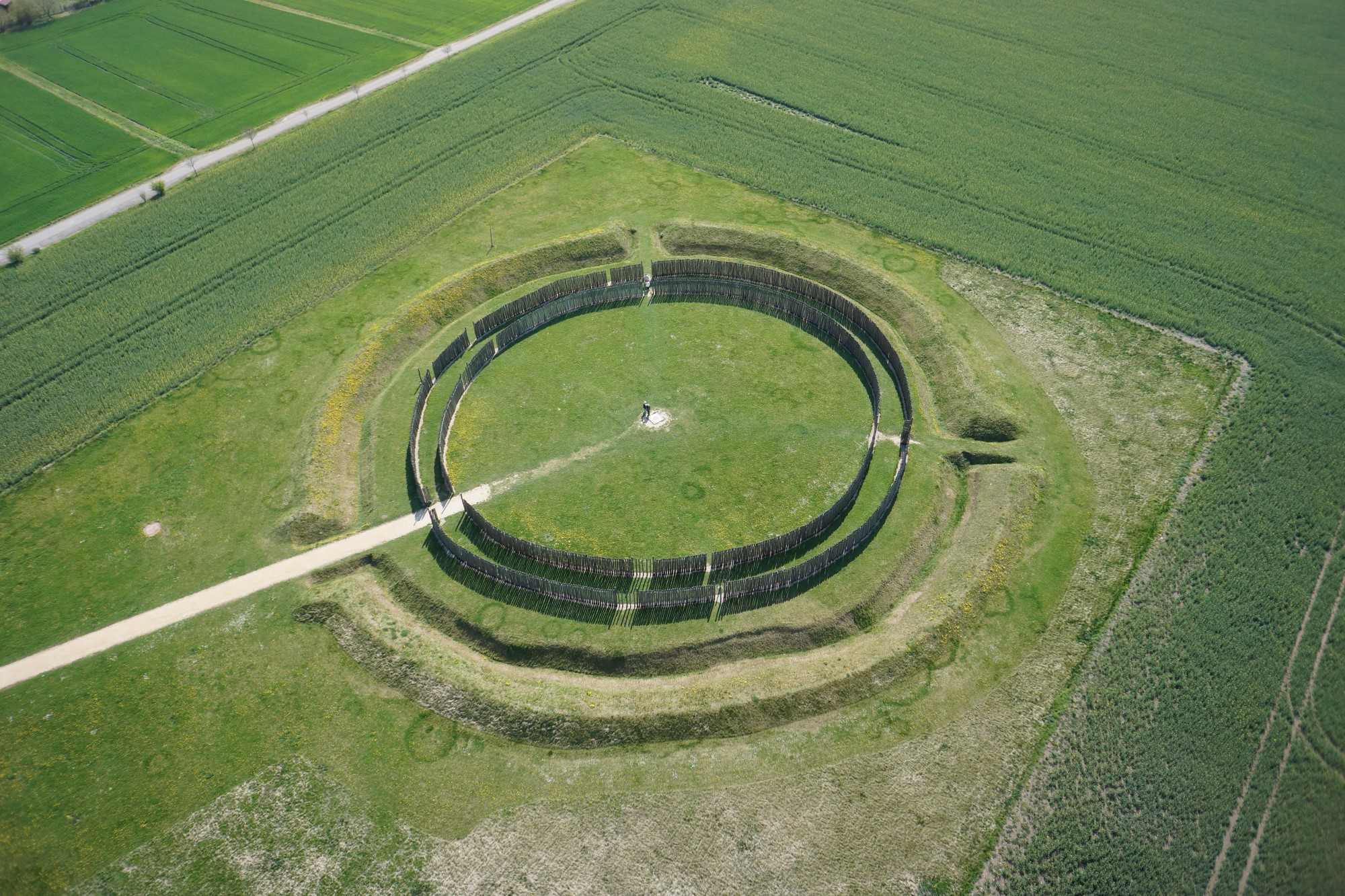 The Goseck Middle Neolithic circular ditch (Stichbandkeramik culture, approx. 4900 to 4600/4550 BCE) was discovered in 1991 by Otto Braasch during aerial archaeological investigations. Between 2002 and 2004 it was completely excavated within a cooperation project between the State Office for Heritage Management and Archaeology Saxony-Anhalt (LDA) and the Martin-Luther University Halle-Wittenberg (MLU). The spectacular results of the excavations led to the decision to completely rebuild the complex on site - it has been open to the public since 2005. Between 2005-2013, a large-scale project led by Prof. Dr. François Bertemes (MLU) followed, which analyzed the setting of the circular enclosure within the contemporaneous settlement landscape.