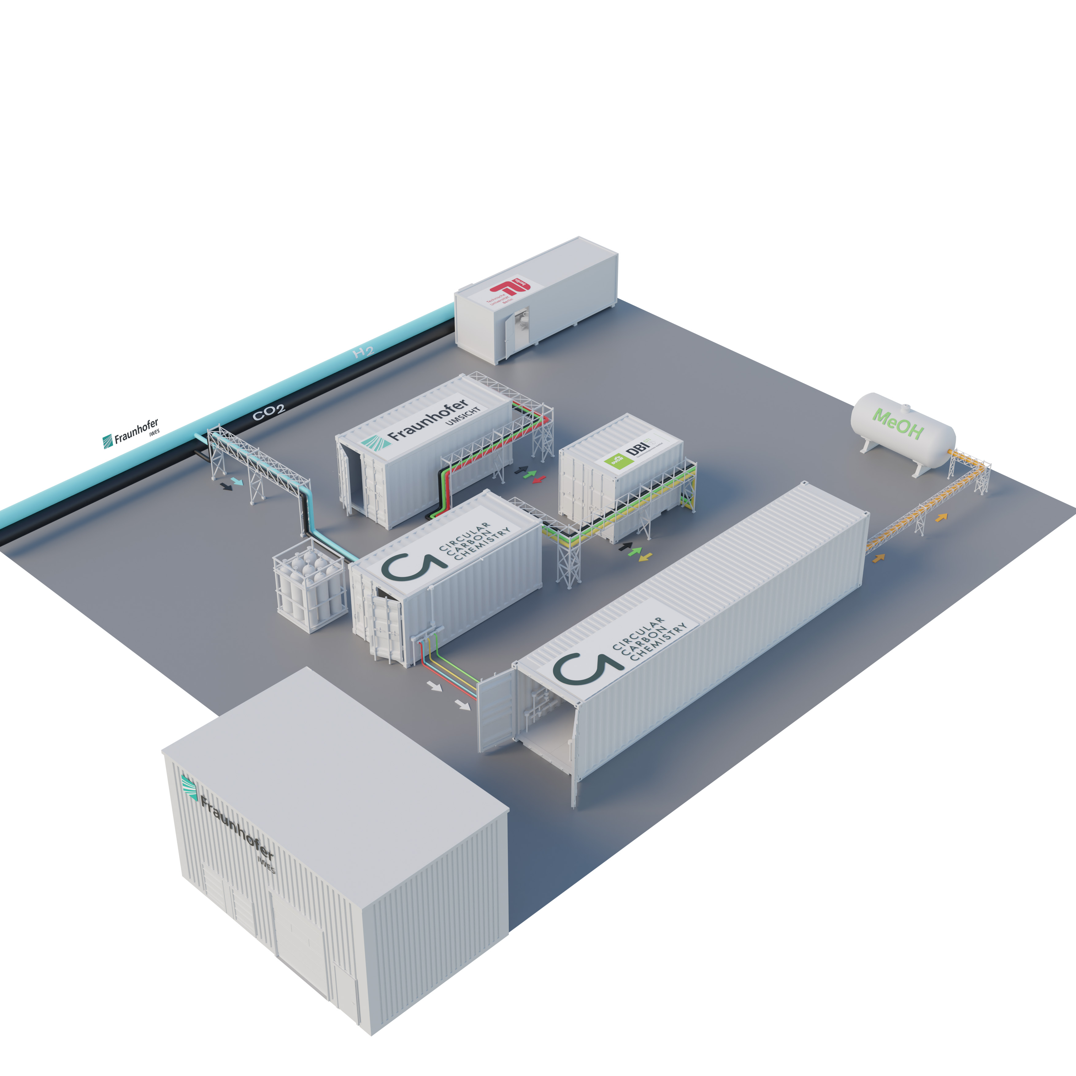 A consortium of two Fraunhofer institutes, DBI-Gastechnologisches Institut Freiberg, Technical University of Berlin and C1 makes industrial history at the Leuna site. The project is funded by the German Federal Ministry of Digital Affairs and Transport over the next three years.