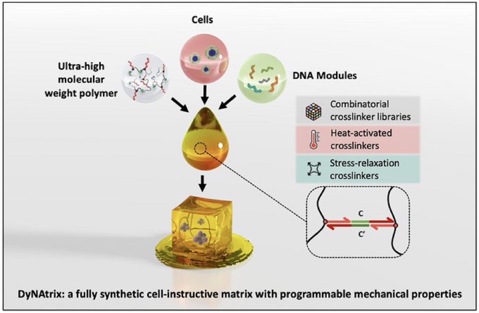 The team of Dr. Elisha Krieg at the Leibniz Institute of Polymer Research Dresden has developed a dynamic DNA-crosslinked matrix (DyNAtrix) by combining classical synthetic polymers with programmable DNA crosslinkers. DNA’s highly specific and predictable binding gives researchers unparalleled control over key mechanical properties of the material. The findings published in Nature Nanotechnology August 7, 2023, are highly relevant to in vitro cell culture materials for biological research.
