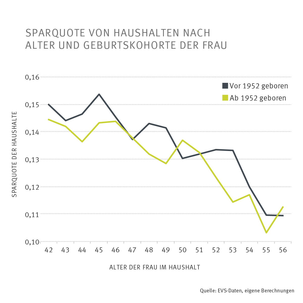 „Während ihrer Berufstätigkeit unterscheiden sich die verfügbaren Einkommen von Frauen der verschiedenen Jahrgänge kaum. Haushalte mit ab 1952 geborenen Frauen geben allerdings während der Erwerbsphase mehr Geld für Freizeitaktivitäten aus“, so Fischer. Entsprechend sank während der längeren Berufstätigkeit ihre Sparquote um durchschnittlich 1,5 Prozentpunkte im Vergleich mit früher geborenen Frauen. Durch die Reform würde das Einkommen der Frauen über die gesamte Rentenzeit um durchschnittlich 12,7 Prozent steigen. Der Grund: Sie bezogen länger ein Gehalt und ihre Rente fällt höher aus, weil sie länger Beiträge zahlten. Durch die geringere Sparquote verschieben die betroffenen Frauen nun einen Teil ihres Einkommenszuwachses in die Phase vor der Rente. Sie haben immer noch rund zehn Prozent mehr Einkommen in der Rente zur Verfügung als die früher geborenen Frauen, die mit 60 in Rente gingen.