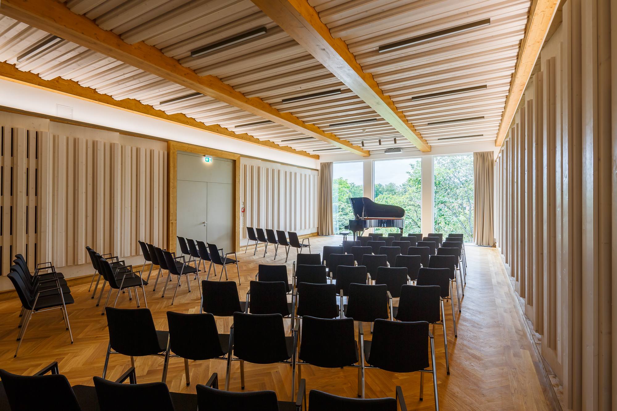 Der Bau ist in reiner Holzbauweise durch Aufstockung auf einem vorhandenen Gebäudeteil entstanden und als Kammermusiksaal in diesen Dimensionen einmalig in Deutschland. Speziell entwickelte Akustikpaneele sollen für einen einzigartigen Klang sorgen. Aufgrund seiner Größe von 120 m² ist er vor allem für Kammermusik geeignet und bietet Platz für 80 Personen.