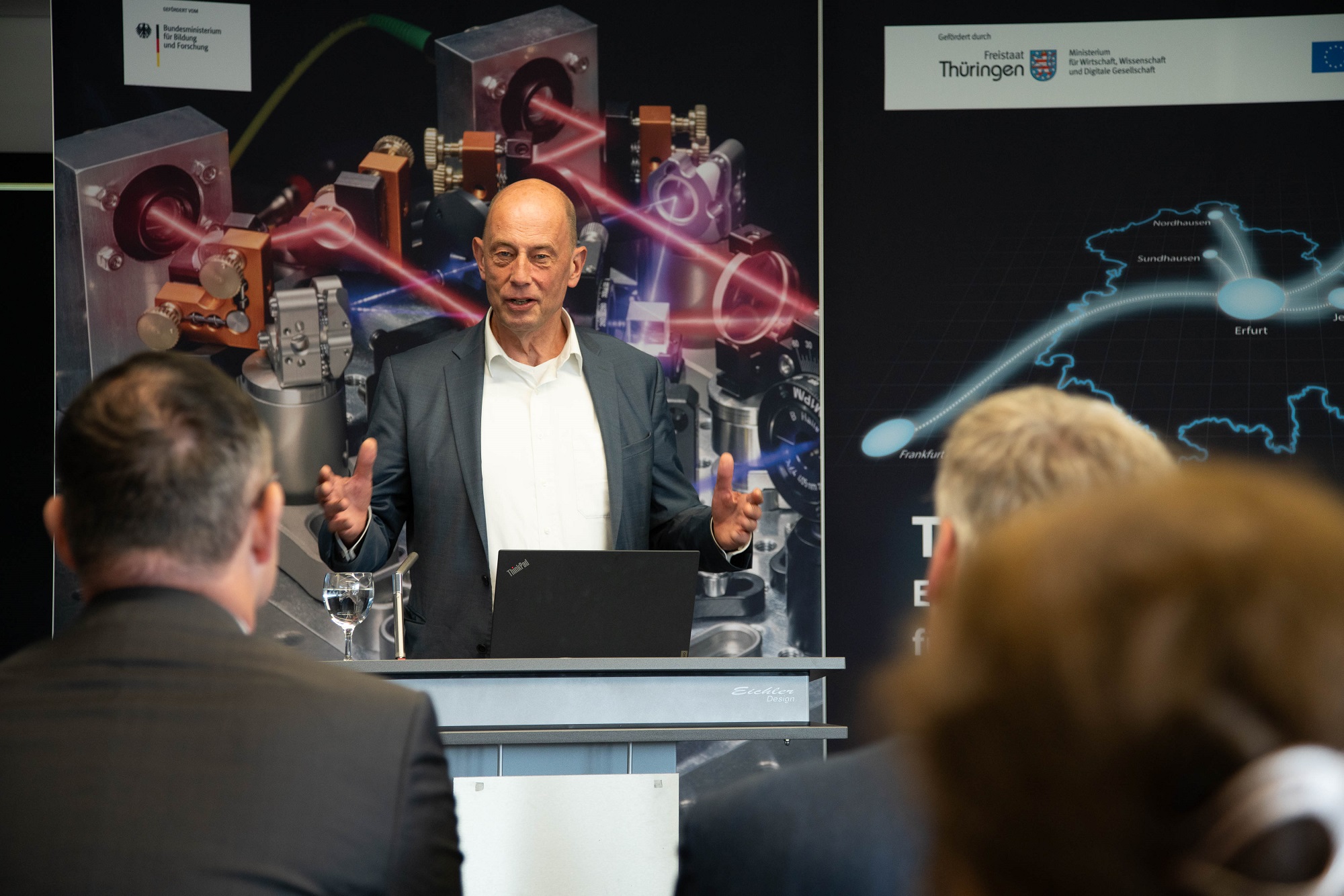 Am Donnerstag besuchte Thüringens Wissenschaftsminister Wolfgang Tiefensee das Fraunhofer-Zentrum in Erfurt, um den Fortschritt bereits bestehender Forschungsprojekte zu begutachten und den Startschuss für die Erweiterung des Quantennetzwerkes in Deutschland zu geben. »Thüringen ist einer der führenden Standorte im Bereich der Quantenkommunikation. Als Land investieren wir seit Jahren gezielt in den Ausbau der dafür benötigten Kompetenzen und Infrastrukturen. Die Erweiterung der bestehenden Teststrecke ist ein weiterer großer Schritt in diese Richtung. Damit schaffen wir die Voraussetzungen für eine sichere Quantenkommunikationsinfrastruktur in ganz Deutschland. Thüringen wird mit seinen Forschungseinrichtungen und Unternehmen darin künftig einen zentralen Knotenpunkt bilden«, erklärte er bei seinem Besuch.