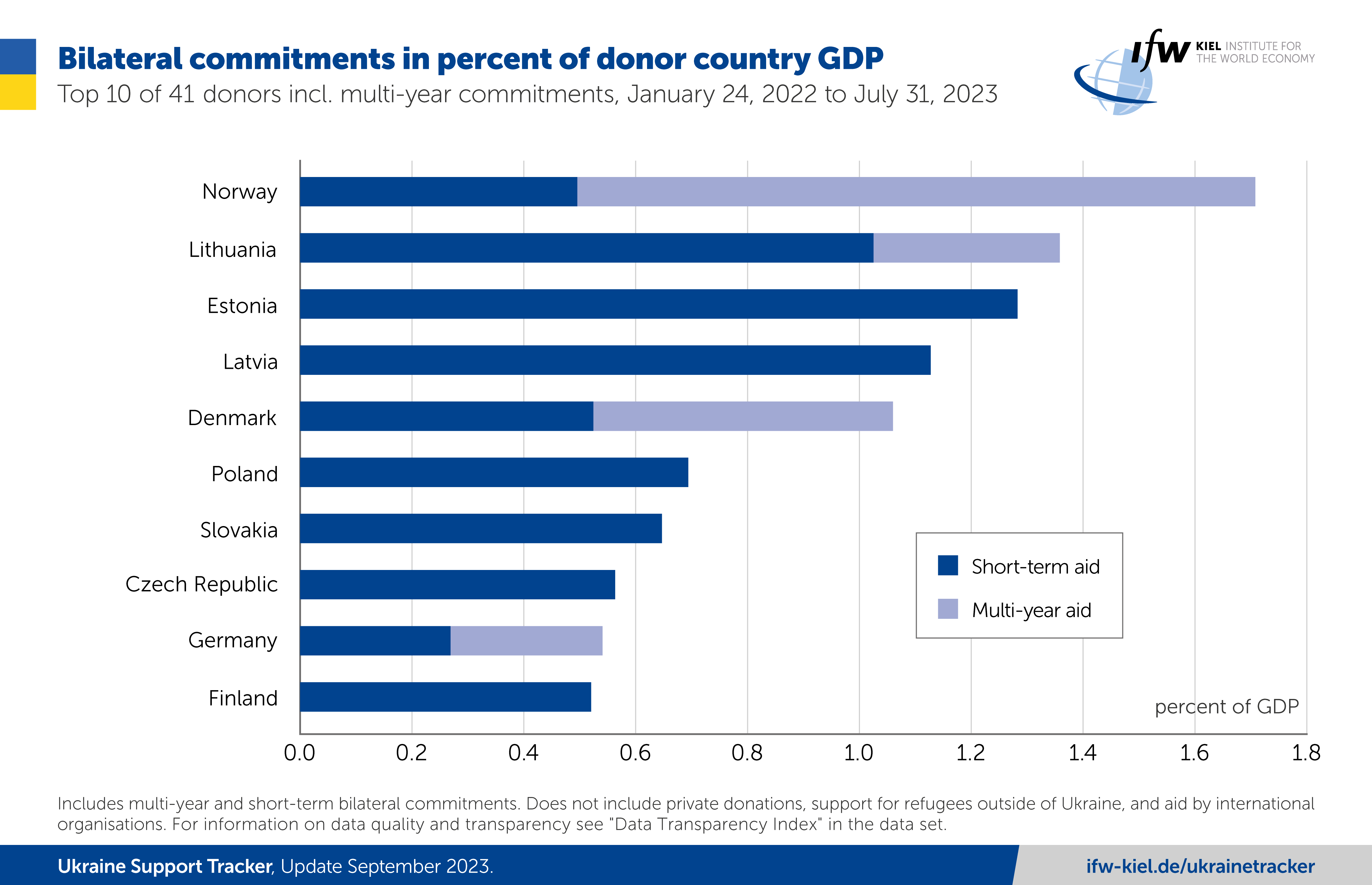 “Despite the many promising new packages, it remains to be seen how much will actually be delivered and when. In the past, European donors were often slow in their deliveries, and this will hopefully be less the case going forward,” says Trebesch.