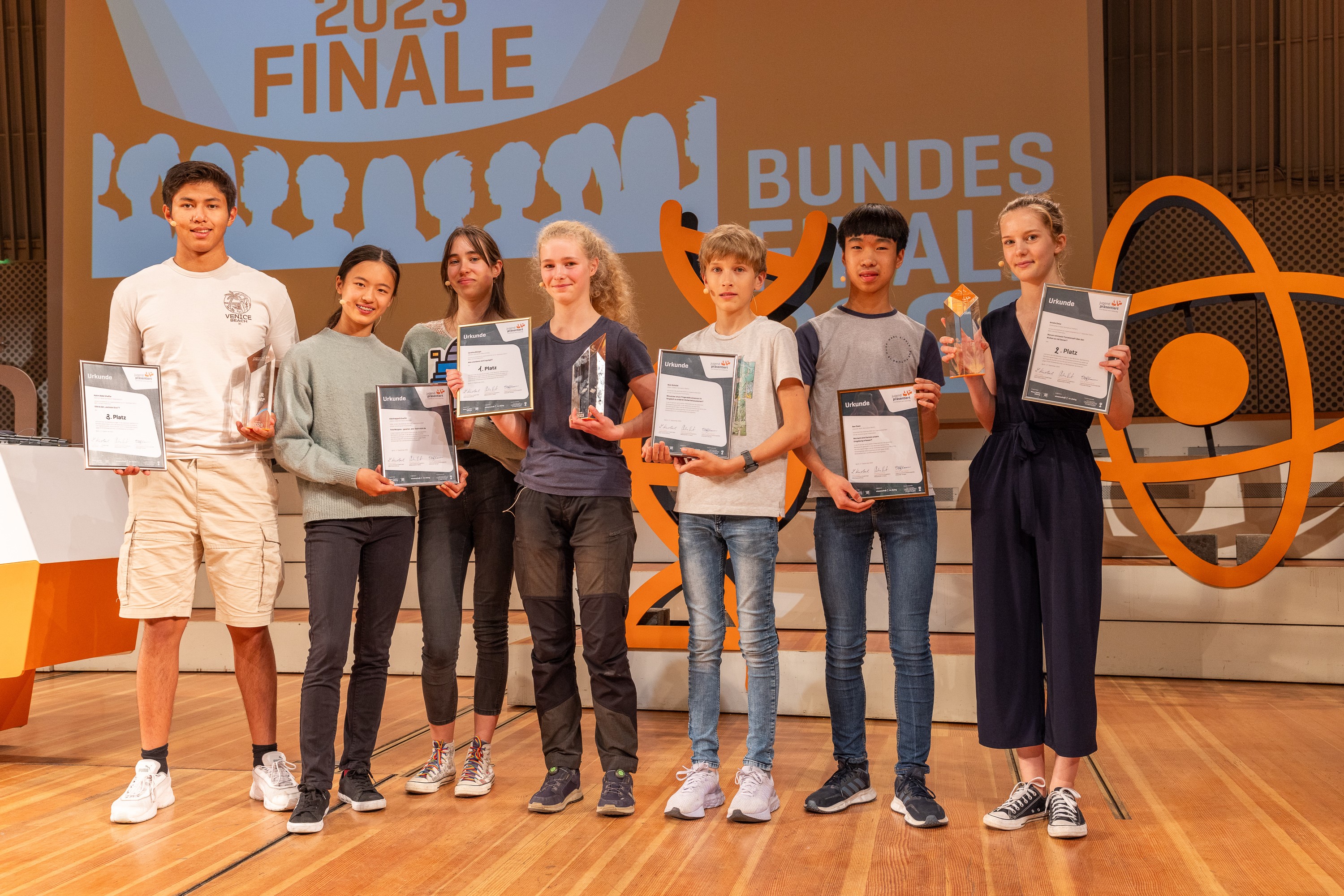 Die Bundessiegerin Carolin Wengst erklärte in sehr lebendiger Weise in einer klar strukturierten Präsentation, wie sich Zugvögel orientieren. Die Zweitplatzierte Amelie Diez erläuterte in ihrer Präsentation, welchen Effekt der Unterdruck im Flugzeug auf den Geschmackssinn hat und unter Einbezug des Publikums veranschaulichte Hatim Abdel Ghaffar die Propriozeption als einen “sechsten Sinn”. Er erreichte den dritten Platz.