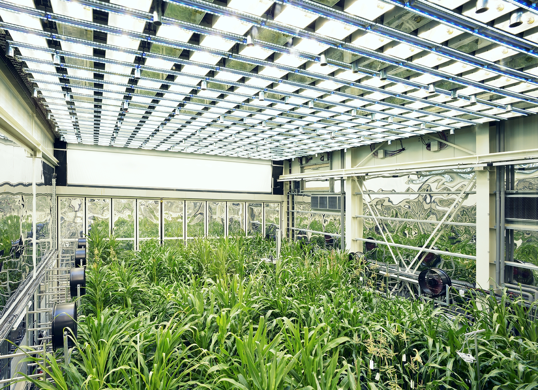 Für die Erforschung molekularer Mechanismen in Pflanzen ist die geringe Vergleichbarkeit der Anbaubedingungen ein großes Problem. Die PhänoSphäre am IPK Leibniz-Institut eröffnet jetzt völlig neue Möglichkeiten. Feldähnliche Umweltbedingungen können nun reproduzierbar simuliert werden. Ein Forschungsteam hat an Maispflanzen eine einzelne Anbausaison in der Anlage nachgestellt und die Daten zur Entwicklung der Pflanzen mit denen eines vieljährigen Feldversuches, einer gemittelten Saison in der PhänoSphäre und eines Anbaus im Gewächshaus verglichen. Dabei zeigte sich, dass das Wachstumsverhalten in der PhänoSphäre der Entwicklung der Pflanzen auf dem Feld sehr nahe kam.