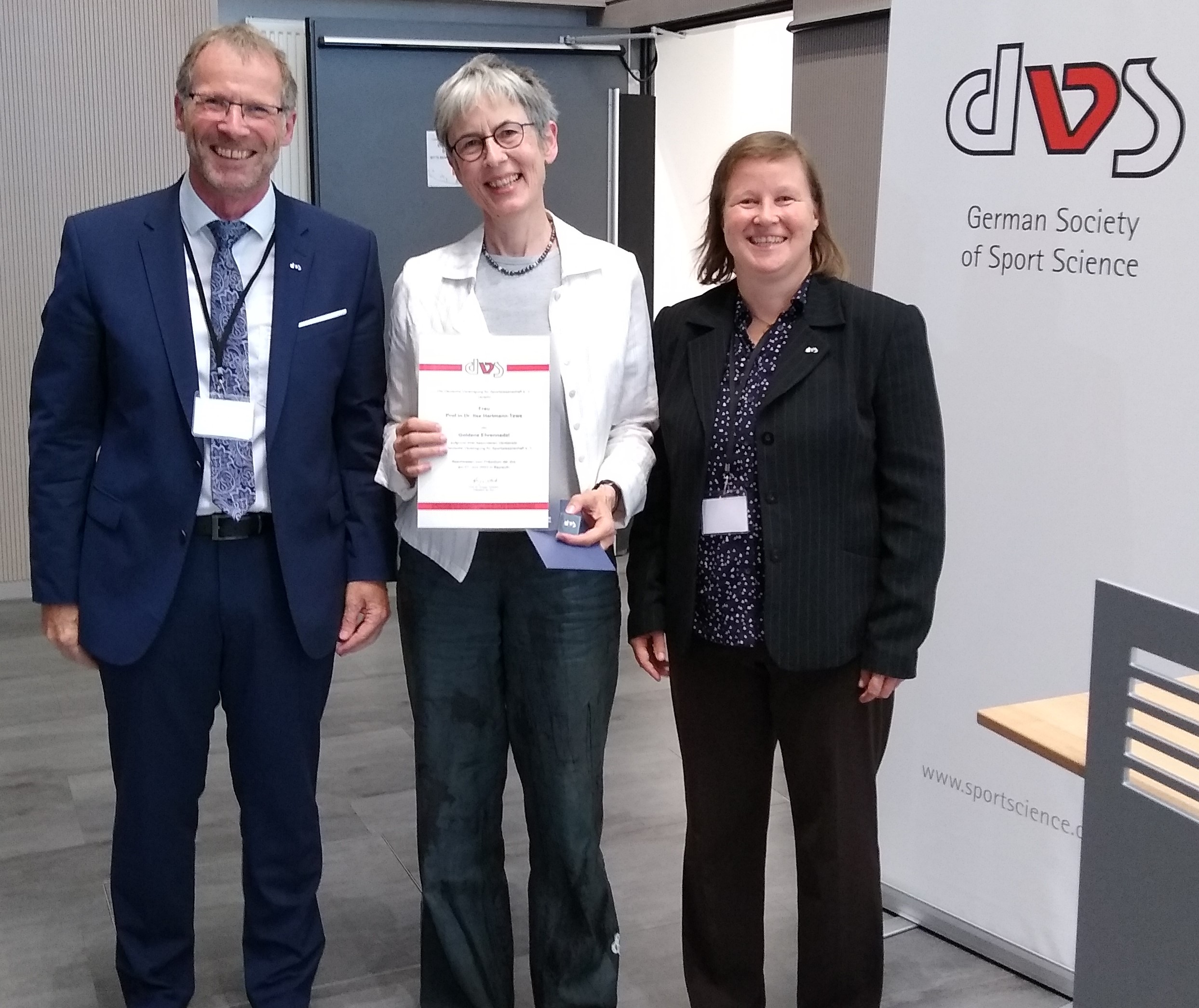 Für die großen Verdienste für die dvs und in der Sportwissenschaft wurde Prof.in Dr. Ilse Hartmann-Tews (Köln) mit der Goldenen Ehrennadel der dvs ausgezeichnet.
