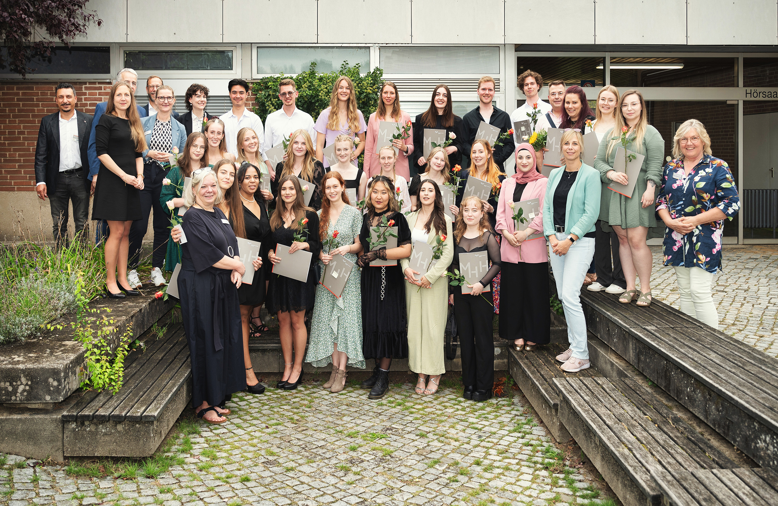 Sie haben es geschafft: Ihre Prüfungen liegen erst wenige Tage oder Stunden hinter ihnen, jetzt dürfen sie sich Pflegefachfrau und Pflegefachmann nennen: 31 junge Menschen haben gestern an der Medizinischen Hochschule Hannover (MHH) ihre Zeugnisse erhalten. Sie gehören damit zu den ersten Absolventinnen und Absolventen, die in den vergangenen drei Jahren nach der neuen generalistischen Ausbildung den Pflegeberuf gelernt haben. Diese soll die Pflegefachkräfte dazu befähigen, Menschen aller Altersgruppen in allen Versorgungsbereichen zu pflegen und mit ihrem Abschluss sowohl in der Klinik, als auch in der Altenpflege und bei ambulanten Diensten zu arbeiten. Zur Feierstunde in der Bildungsakademie kamen die neuen Pflegefachkräfte mit ihren Angehörigen und nahmen zahlreiche Glückwünsche entgegen, von der Akademieleitung und ihren Klassenlehrerinnen, ebenso vom Präsidium, dem Personalmanagement und der Pflegedirektion der Hochschule. „Die MHH und das Präsidium gratulieren Ihnen zu diesem Erfolg! Wir freuen uns sehr auf Sie!“, richtete Professor Frank Lammert, Vizepräsident und Vorstandsmitglied für das Ressort Krankenversorgung, sein Grußwort an die glücklichen Absolventinnen und Absolventen.
