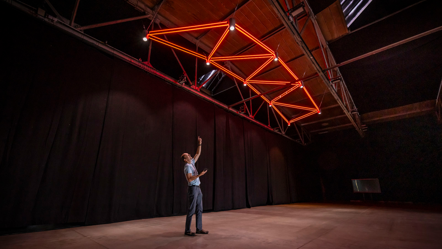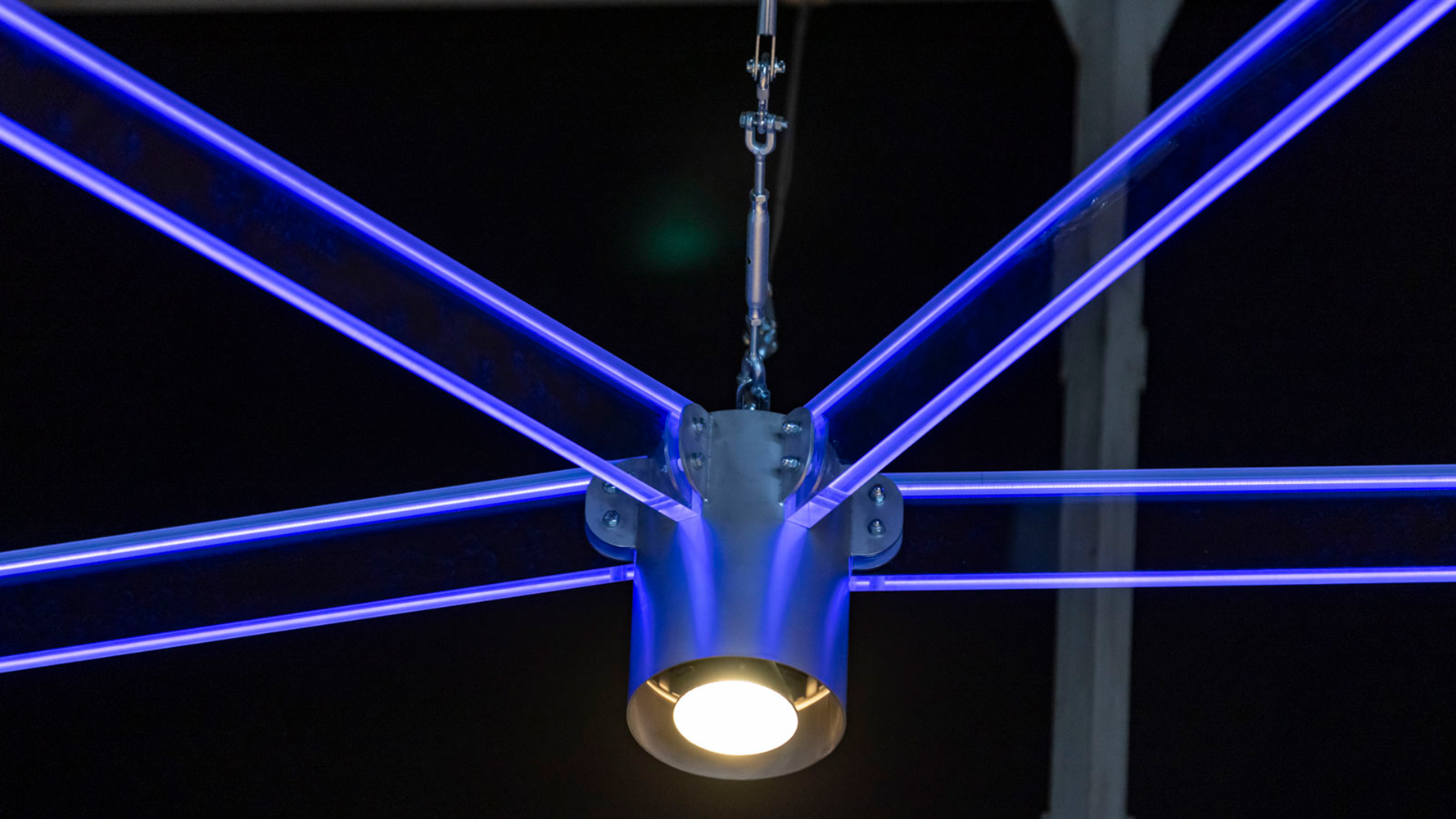 Wenn denkmalgeschützte Bauwerke beleuchtet werden, sollten die Leuchtsysteme möglichst filigran gestaltet sein, um den Blick auf architektonische Details des Gebäudes nicht zu beeinträchtigen. Auch im Eventbereich ist es oft besser, auf eine großflächige Beleuchtung mit riesigen Scheinwerfern zu verzichten – auch aus energetischen Gründen. Forschende des Bereiches „Leichtbau im Bauwesen“ an der Professur Strukturleichtbau/Kunststoffverarbeitung der Technischen Universität Chemnitz haben dafür gemeinsam mit Chemnitzer Partnerinnen und Partnern aus der Praxis ein freigestaltbares Beleuchtungsgitter in modularer Leichtbauweise entwickelt. Seine Feuertaufe hat das System bereits im Veranstaltungsbereich der KRAFTVERKEHR Event GmbH in Chemnitz bestanden. In der großen Eventhalle an der Fraunhoferstraße wurde ein etwa 30 Quadratmeter großes Beleuchtungsgitter installiert.