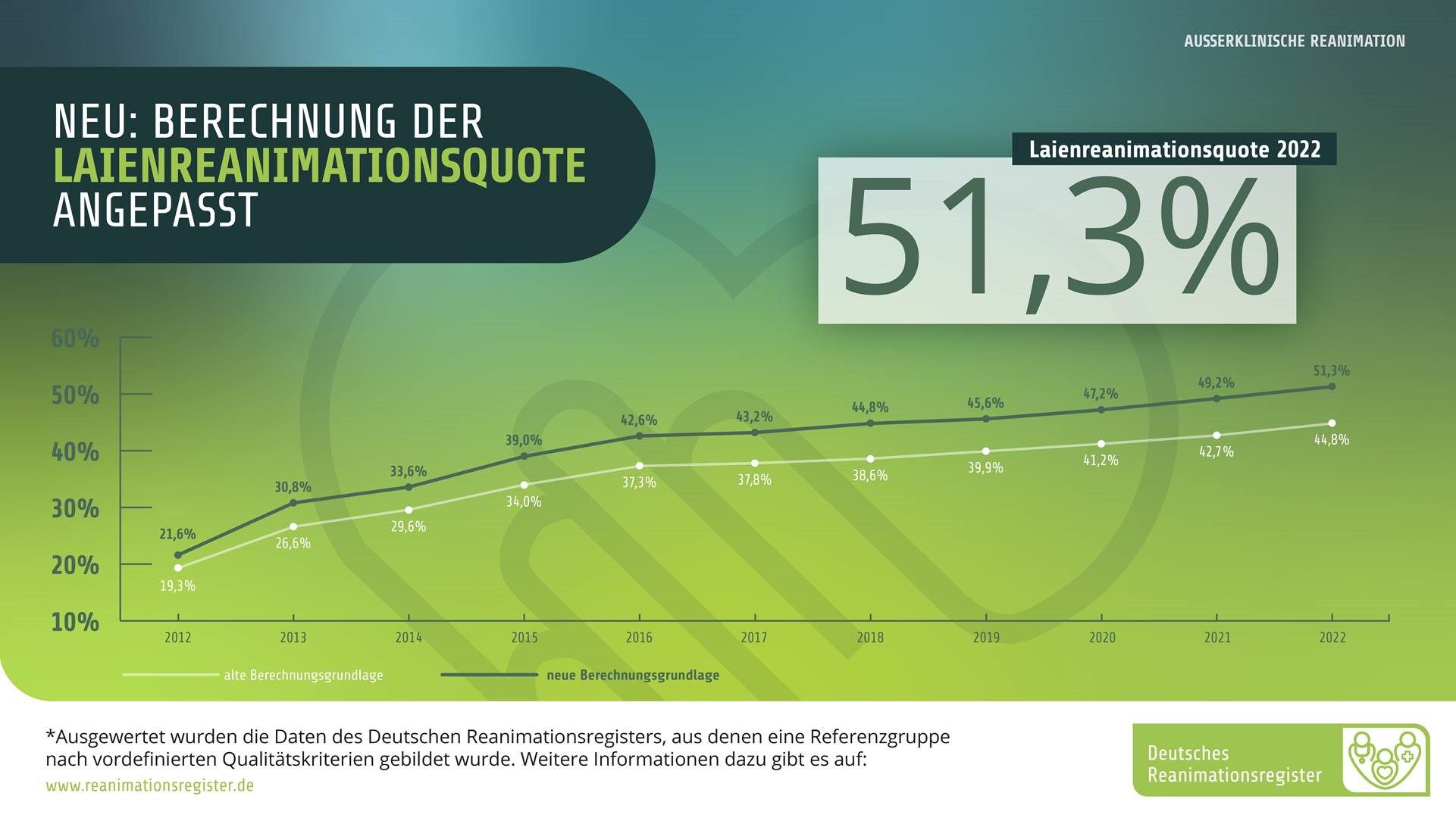Alle Daten des Deutschen Reanimationsregisters sind im Detail im Jahresbericht 2022 unter https://www.reanimationsregister.de/themen/jahresberichte.html einzusehen.