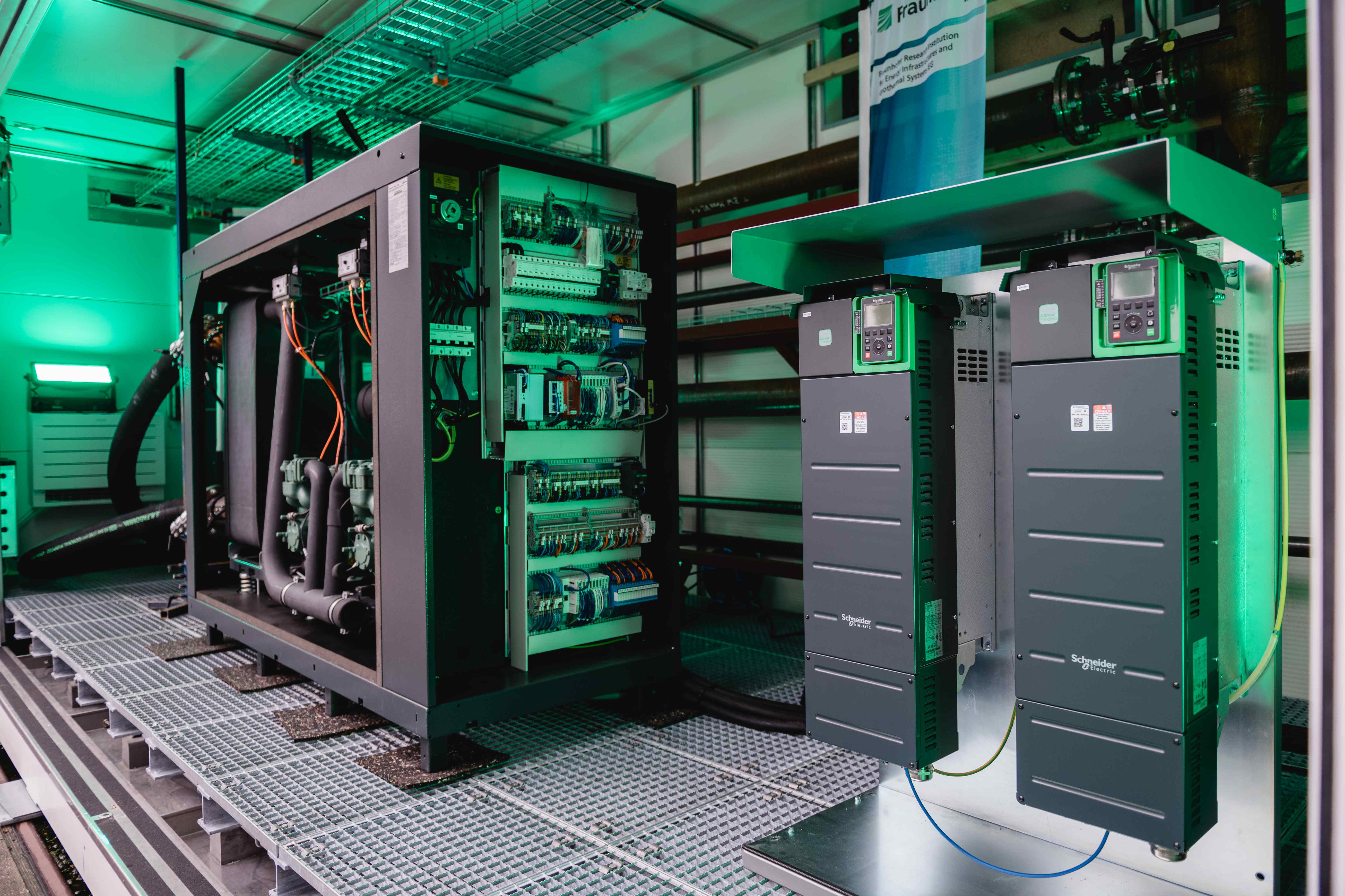 Die nun eingeweihte Anlage umfasst zwei Forschungs- und Erprobungsprüfstände für Wärmepumpen großer Leistung und hoher Temperaturen. Großwärmepumpen (GWP) und Hochtemperaturwärmepumpen (HTWP) können die Bereitstellung von Fern- und Prozesswärme in Zukunft nachhaltig und CO2-frei übernehmen. Als Basistechnologie, die die Grundlage für die Integration von erneuerbarem Strom ins Wärmenetz schafft, nehmen GWP und HTWP eine zentrale Rolle bei der Energiewende ein. Fraunhofer IEG unterstützt Hersteller, Projektierer und Entwickler mit den Prüfständen dabei, ihre Technologien für den Markt zu validieren und den Betrieb zu optimieren. Die Anlage ist eine zugangsoffene Infrastruktur für Testung, Qualifizierung und Weiterentwicklung von Wärmepumpen nach anerkannten Standards. Mit Großwärmepumpen können fossile Wärmenetze und damit viele Haushalte auf einen Schlag von nachhaltiger Energie profitieren oder Industriebetriebe ihren Wärmebedarf nachhaltig, zuverlässig und bezahlbar am heimischen Markt decken.