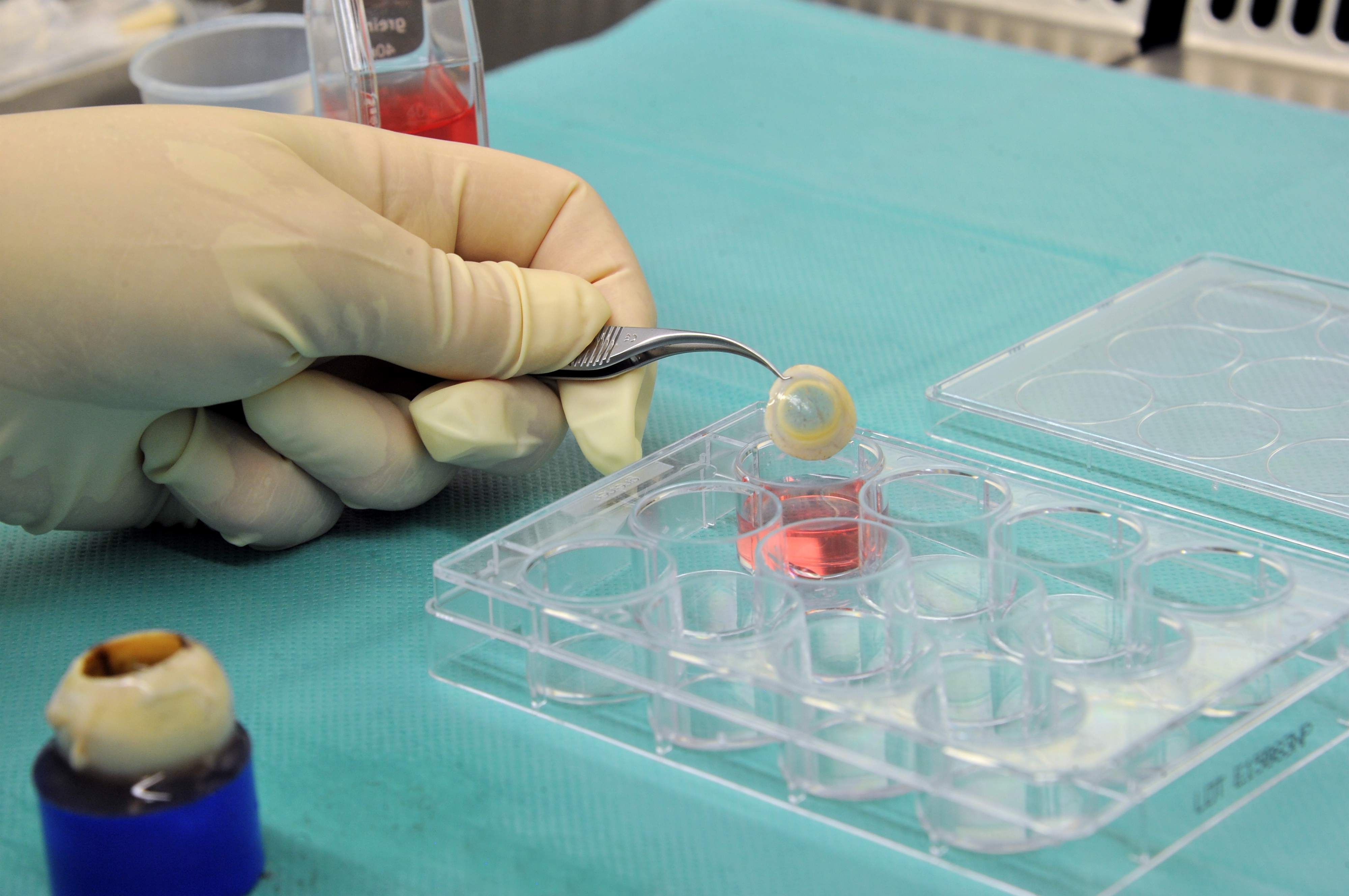 In der Gewebebank Rostock wird eine Hornhaut präpariert, die später einem Patienten mit einer schwerwiegenden Augenerkrankung eingesetzt werden kann. Im Gegensatz zu Herz- und Muskelgeweben, die bis zu fünf Jahren haltbar sind, müssen Augenhornhäute nach maximal 34 Tagen transplantiert werden.