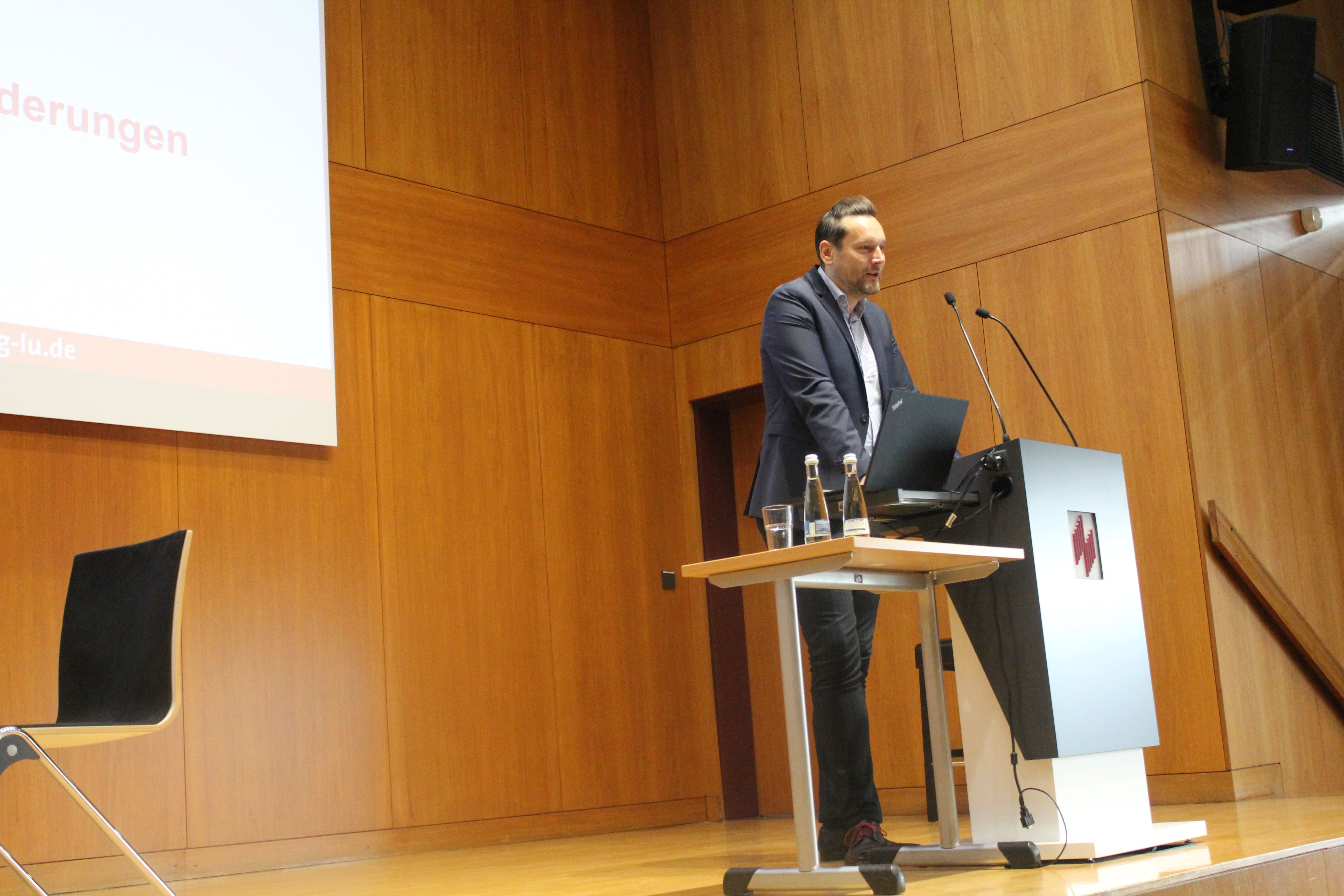 Diese beiden Dimensionen des Themas griff auch Ministerialdirektor Daniel Stich vom Ministerium für Wissenschaft und Gesundheit Rheinland-Pfalz auf. In seinem Impulsvortrag ging er sowohl auf nachhaltige Gesundheitsversorgung beginnend mit Präventivmaßnahmen zur Gesundheitsförderung über die Krankenversorgung bis zu Maßnahmen der Nachsorge und der Rehabilitation als auch auf die Folgen des Klimawandels für das Gesundheitswesen ein. „Der Klimawandel ist die größte globale Herausforderung und auch eine besondere Herausforderung unseres Gesundheitssystems“, so Stich mit Blick auf Studien der Weltgesundheitsorganisation WHO und ergänzte: „Auch Deutschland und Rheinland-Pfalz sind davon betroffen“. Vermehrte Antibiotikaresistenzen, steigende Borreliose-Gefahr, Auftreten von West-Nil-Fieber in nördlichen Breiten, erhöhte Keimbelastung in Gewässern und eine größere Zahl von Hitzetoten nannte Stich als Beispiele. Ressortübergreifende Maßnahmen zur Verringerung klimaschädlicher Emissionen sowie zur Anpassung an den Klimawandel zu ergreifen, sei daher von großer Wichtigkeit: Der Hitzeaktionsplan sei dafür ein Baustein, ebenso die Entsiegelung von Flächen, die Begrünung und Beschattung von Innenstädten oder die angestrebte Emissionsreduzierung von Einrichtungen des Gesundheitswesens wie beispielsweise Krankenhäusern, so Stich.