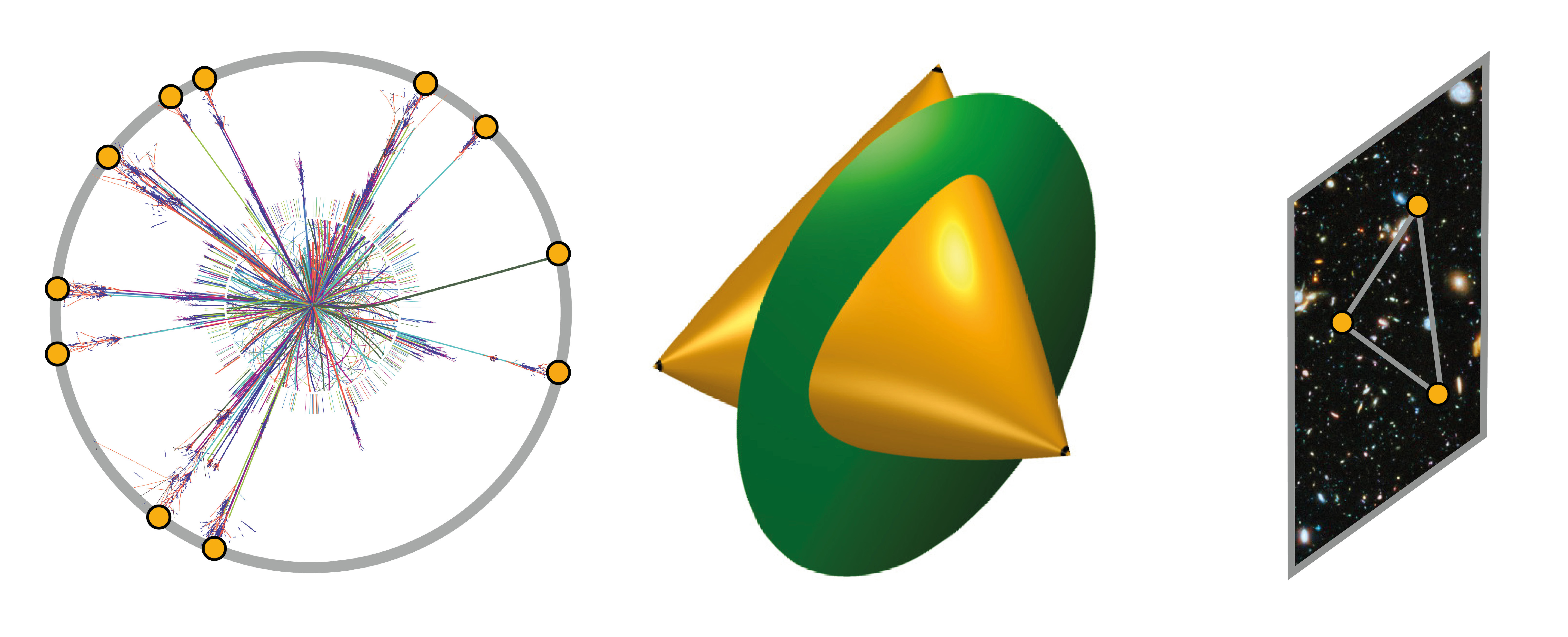 Kürzlich wurden in den Datensätzen, die die Streuung von Elementarteilchen und die korrelierten Positionen kosmologischer Strukturen am Himmel beschreiben, neuartige geometrische Formen, so genannte "positive Geometrien", entdeckt. "Wir glauben, dass diese positiven Geometrien den Tiger beim Schwanz gepackt haben", sagt Nima Arkani-Hamed, "sie geben uns die ersten konkreten Beispiele dafür, wie die Prinzipien der Raumzeit und der Quantenmechanik aus grundlegenderen mathematischen Prinzipien entstehen können." Bislang wurden diese positiven Geometrien jedoch nur in vereinfachten spielerischen Modellen der physikalischen Welt gefunden. Ziel der UNIVERSE+-Kollaboration ist es, diese neuen Ideen vollständig zu verstehen und zu entschlüsseln. Zudem gilt es, die Geometrien zu finden, die für die reale Welt relevant sind, was die Schwerkraft und das expandierende Universum einschließt.