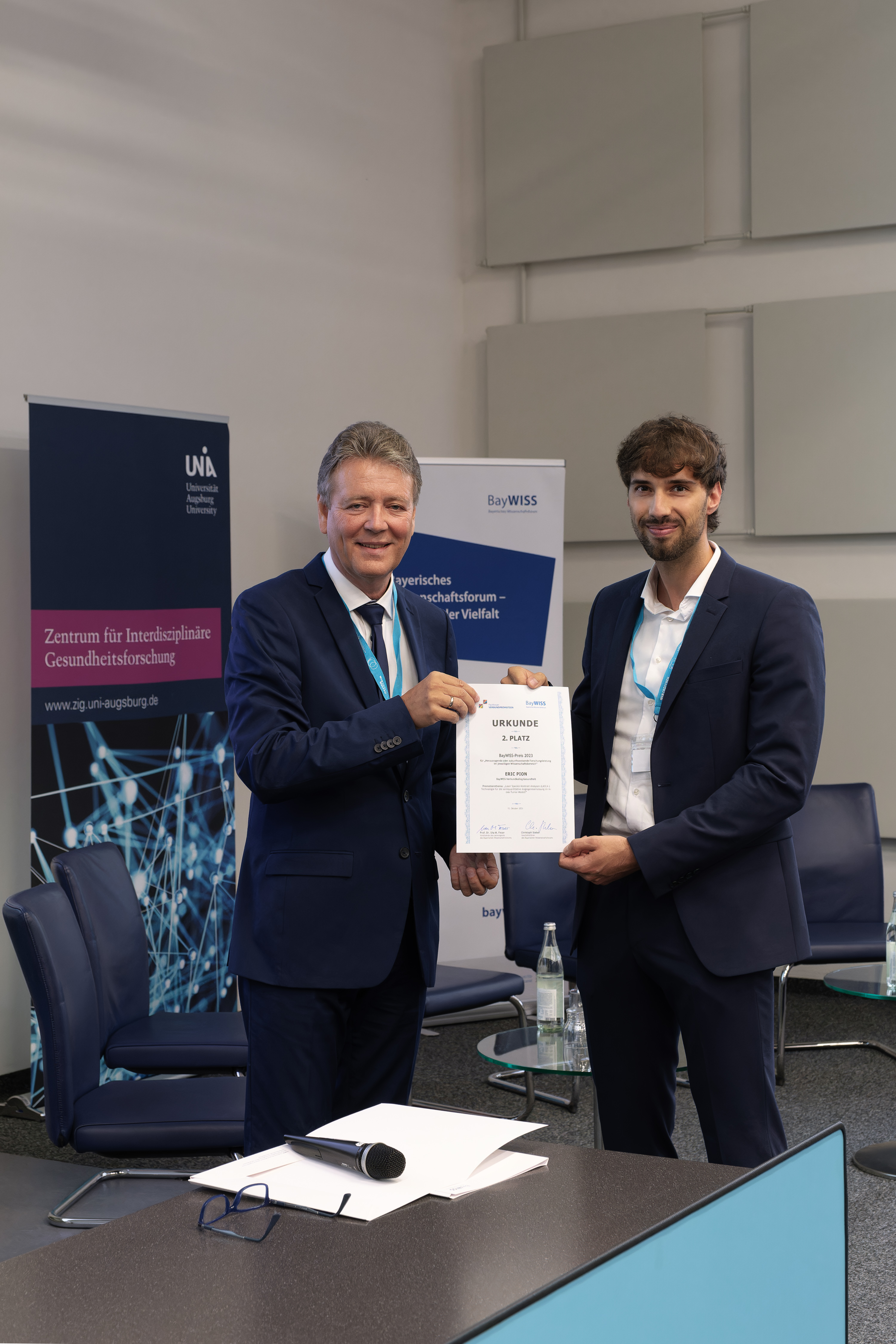 Am 12. Oktober wurde auf dem Campus der Universität Augsburg der jährliche BayWISS-Preis für herausragende oder zukunftsweisende Forschungsleistung im jeweiligen Wissenschaftsbereich verliehen. Im Rahmen des Jahreskolloquiums wurde mit Eric Pion auch ein junger Wissenschaftler ausgezeichnet, der gemeinschaftlich von Prof. Dr. Thiha Aung von der Technischen Hochschule Deggendorf (THD) sowie von Prof. Dr. Silke Härteis, Professorin für Molekulare und Zelluläre Anatomie an der Universität, Regensburg betreut wird.