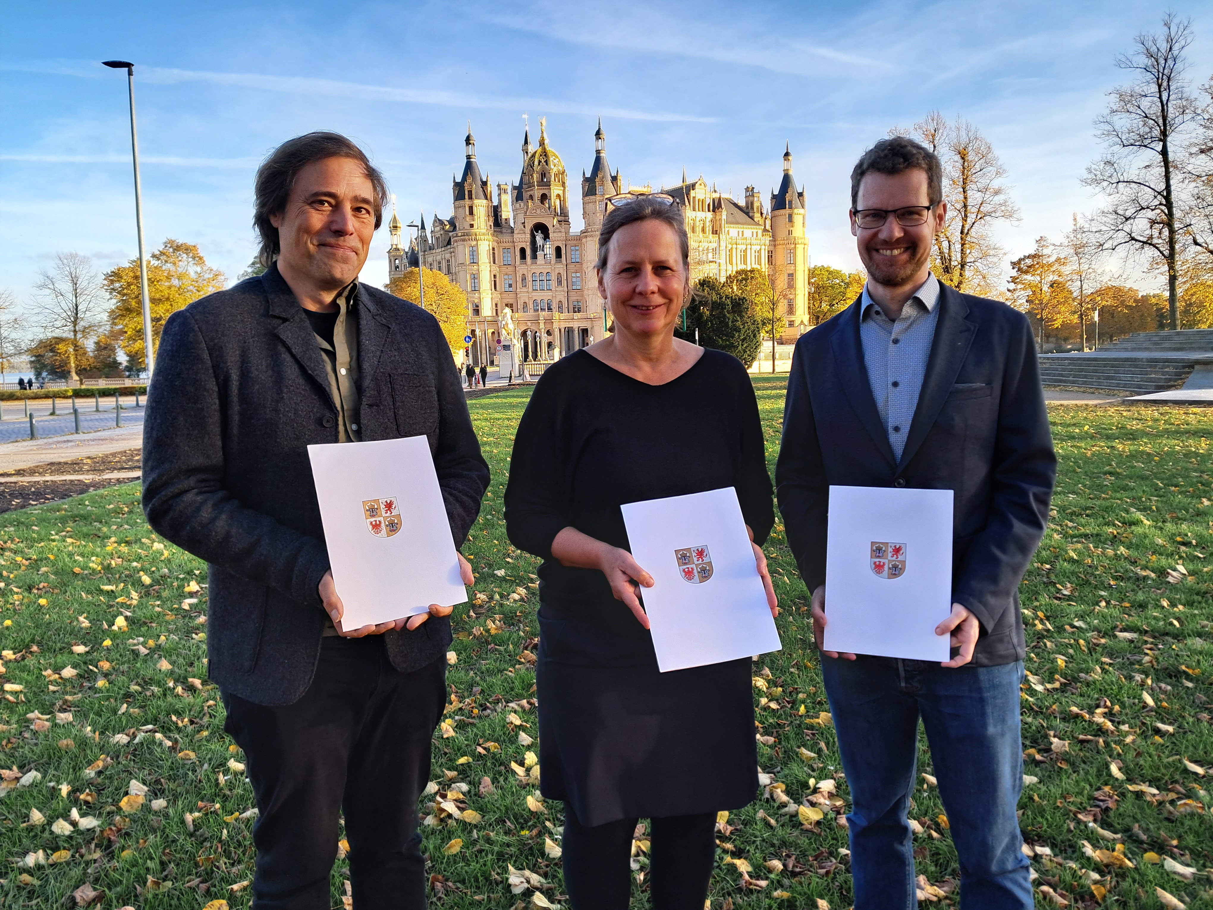 An den Hochschulstandorten Rostock, Stralsund und Neubrandenburg werden zum 1. November 2023 eine Professorin und zwei Professoren Ihren Dienst aufnehmen. In Schwerin erhielten die zukünftigen Hochschullehrenden heute ihre Ernennungsurkunden vom Leiter der Abteilung Wissenschaft im Wissenschaft- und Kulturministerium Woldemar Venohr.