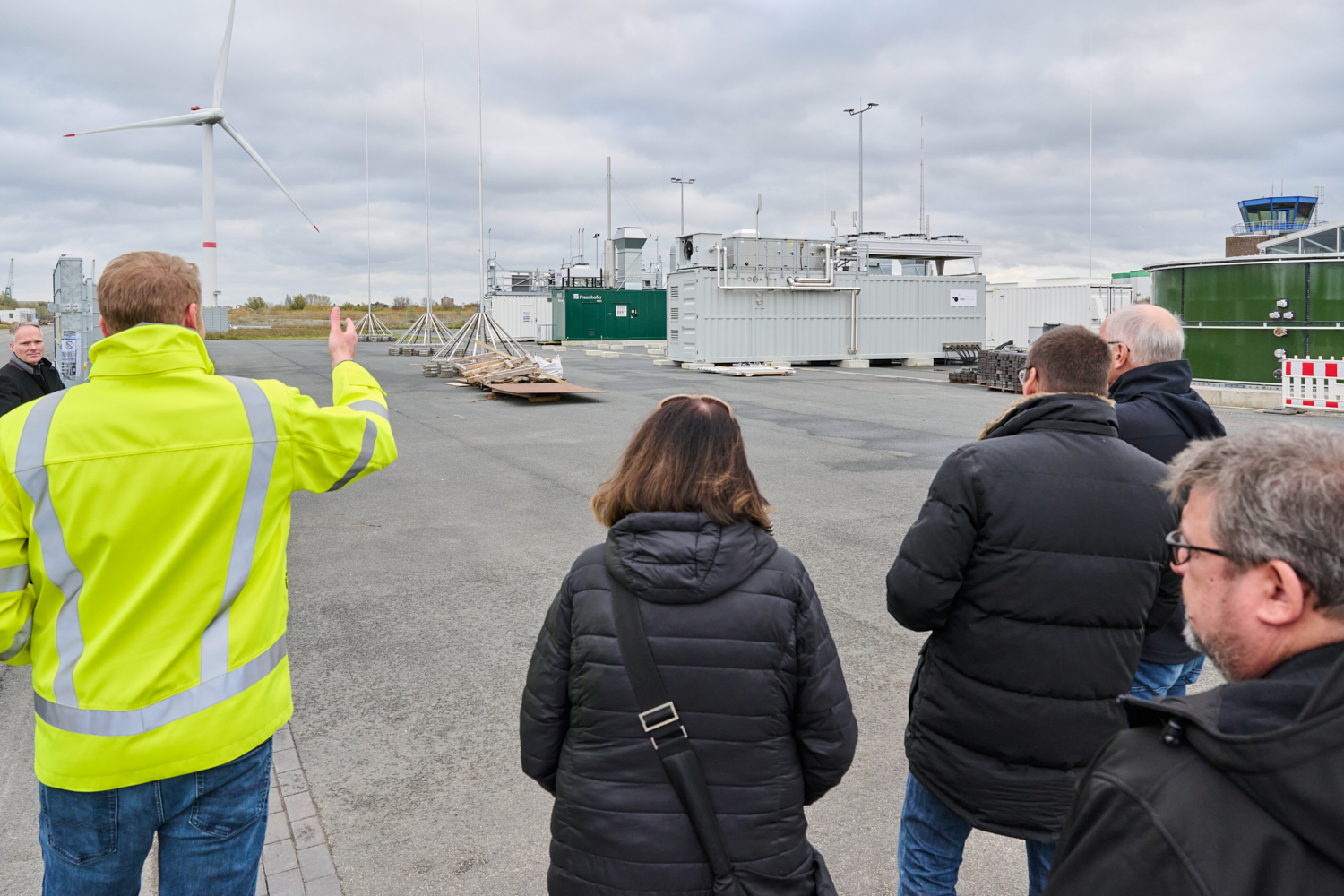 Senatorin Kristina Vogt und Oberbürgermeister Melf Grantz starten gemeinsam mit dem Fraunhofer-Institut für Windenergiesysteme IWES den Probebetrieb am Hydrogen Lab Bremerhaven (HLB). Damit ist die Infrastruktur bereit für die Forschungsaktivitäten, die sich in Bremerhaven auf das Zusammenspiel von Windenergieanlagen mit der elektrolytischen Wasserstofferzeugung konzentrieren. Das HLB wurde aus Mitteln des Europäischen Fonds für regionale Entwicklung (EFRE) sowie des Landes Bremen mit insgesamt 16 Mio. € gefördert.