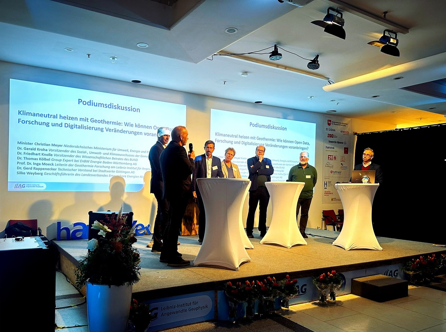 Eins der Highlights der Veranstaltung bildete die Einrahmung der Podiumsdiskussion „Klimaneutral heizen mit Geothermie – wie können Open Data, Forschung und Digitalisierung Veränderungen voranbringen?“ in den November der Wissenschaft, woran unter anderem der Niedersächsische Umweltminister Christian Meyer teilnahm. So wurden Fragen und Anliegen in diesem aktuellen Thema im Bereich Forschung, Politik und Gesellschaft zu Potenzialen und Risiken in Deutschland und Niedersachsen öffentlich mit der Bevölkerung diskutiert. Das LIAG ist Partner der Initiative Wissenschaft Hannover, die den November der Wissenschaft alle zwei Jahre organisiert.
