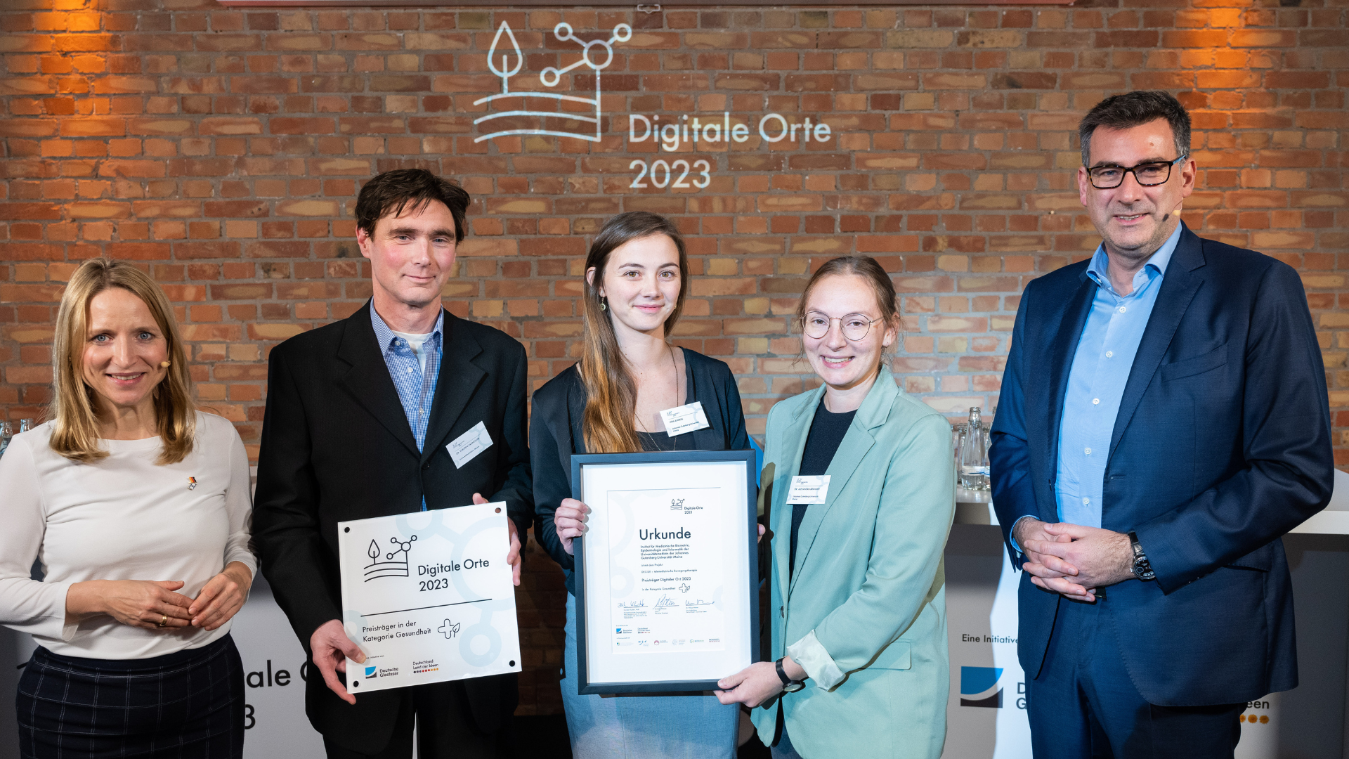 Das vom Institut für Medizinische Biometrie, Epidemiologie und Informatik (IMBEI) der Universitätsmedizin Mainz koordinierte Projekt DECIDE wurde am Dienstag in Berlin als Gewinner des Innovationswettbewerbs „Digitale Orte im Land der Ideen 2023“ in der Kategorie Gesundheit ausgezeichnet. Das Mainzer Projekt zählt damit zu den insgesamt fünf Preisträger:innen, die von einer hochkarätigen Jury aus über 170 Einreichungen ausgewählt wurden. Der gemeinsam von der Initiative „Deutschland – Land der Ideen“ und der Unternehmensgruppe Deutsche Glasfaser ausgerichtete Wettbewerb prämierte zum zweiten Mal herausragende digitale Lösungen für den ländlichen Raum.