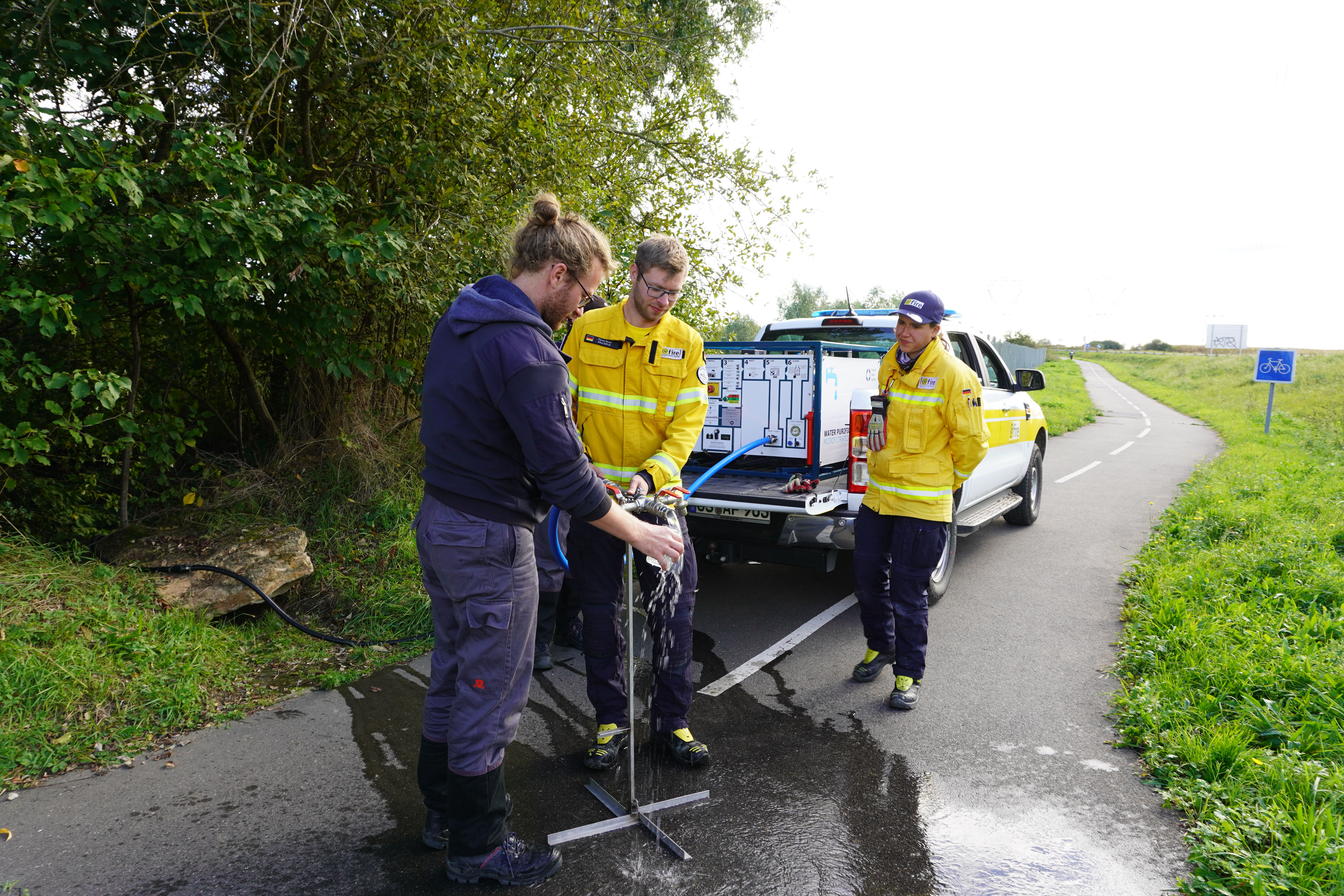 Öffentlich wirksam präsentiert wurde die Anlage kürzlich in Villejust nahe Paris mit den Hilfsorganisationen @fire aus Deutschland, S.A.R.A.I.D. aus Großbritannien, SARDA aus Nord-Irland und einer kleinen ukrainischen Delegation bei einem viertägigen Katastrophenschutz-Trainingseinsatz, berichtet Peper. „Trotz des sehr stark verschmutzten Wassers haben wir mit einer Anlage ausreichend Wasser für alle fünfzig Einsatzkräfte bereitgestellt“, so Peper – komplett ohne externe Strom- und Wasserversorgung. Mit einem Feldlabor sind nach seinen Worten alle wichtigen chemischen und biologischen Parameter gemessen und die Reinheit sichergestellt worden.