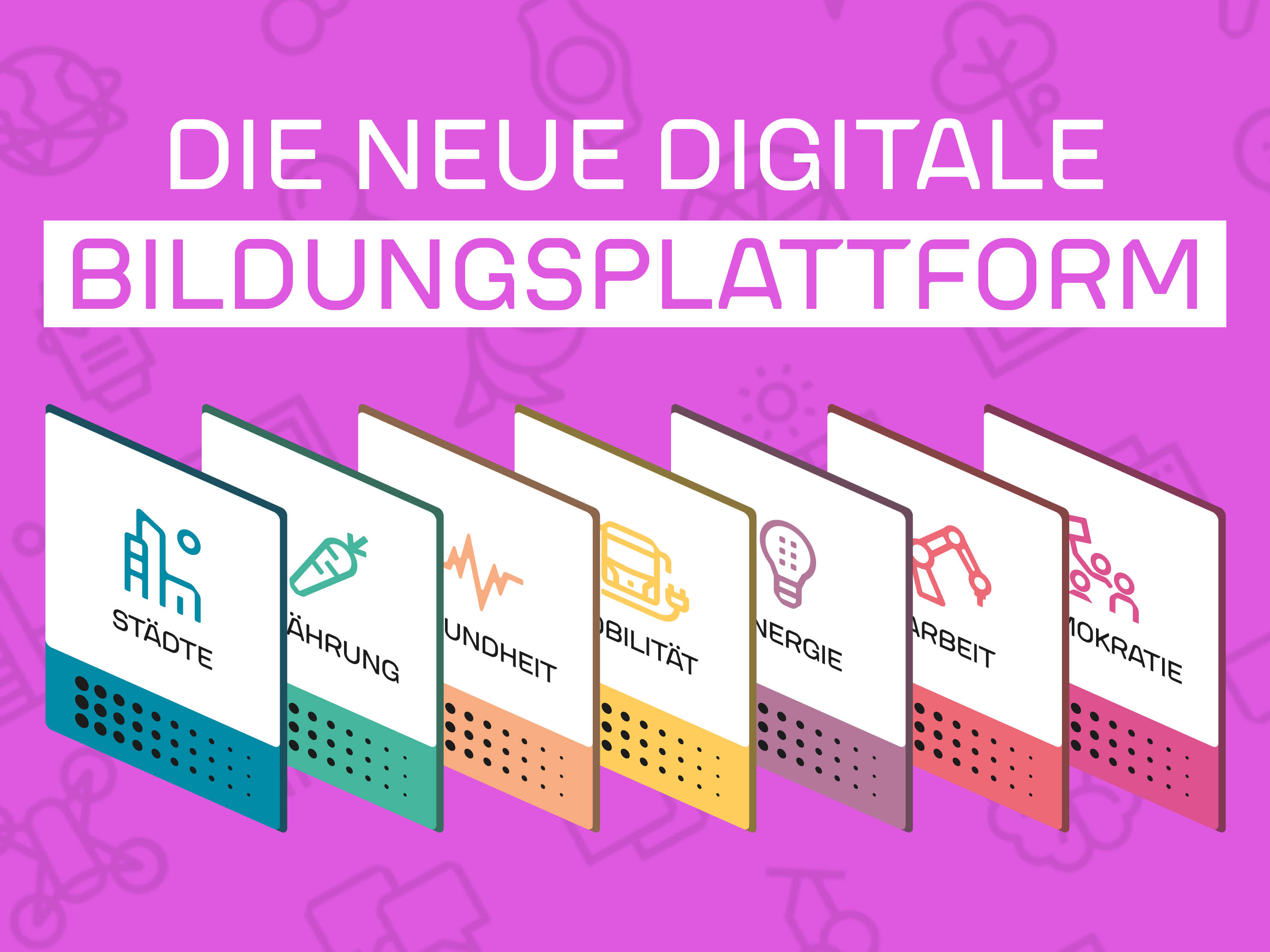 Auf der Bildungsplattform geht es um Zukunftsszenarien für Themenfelder wie Städte, Arbeit, Mobilität, Demokratie, Gesundheit oder Energie. Allen Szenarien gemeinsam ist, dass sie selbstbestimmt mitgestaltet werden können. Mit Online-Workshops oder Tutorials lässt sich ausprobieren, wie Lösungen für lokale oder globale Herausforderungen entwickelt werden können. Alle Angebote basieren auf wissenschaftlicher Zukunftsforschung, der Bildung für nachhaltige Entwicklung und dem Design Thinking.