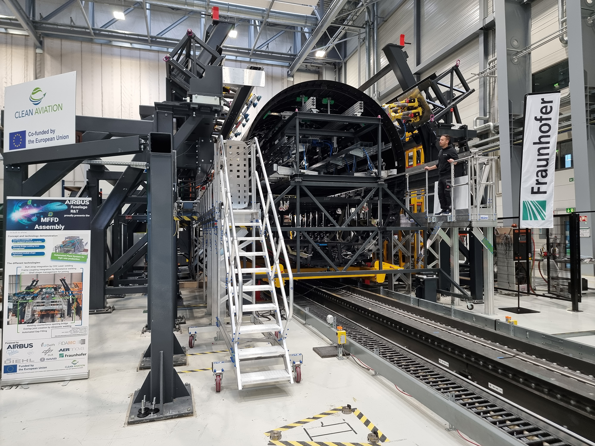 Der »MFFD« dient als Forschungsplattform dem Ziel, die im Rahmen des von der EU geförderten Clean Sky 2-Projekts »Large Passenger Aircraft« entwickelten Technologien aller beteiligten Partner im 1:1-Maßstab und im Zusammenspiel praktisch zu erproben. Das Event fokussierte insbesondere auf den in dieser Größenordnung einzigartigen, automatisiert ablaufenden Montageprozess mittels thermoplastischer Schweißverfahren sowie die Präsentation der bereits fertiggestellten vorintegrierten thermoplastischen Ober- und Unterschale.