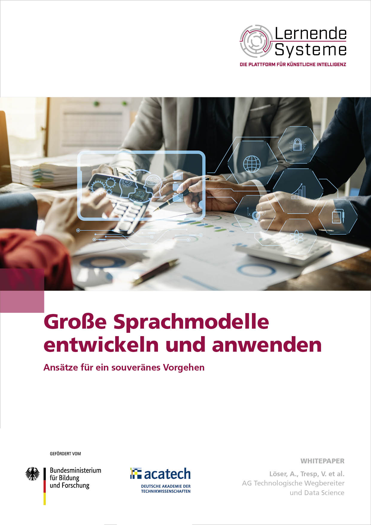 https://www.plattform-lernende-systeme.de/files/Downloads/Publikationen/AG1_WP_Grosse_Sprachmodelle_Anwendungen.pdf Whitepaper "Große Sprachmodelle entwickeln und anwenden. Ansätze für ein souveränes Vorgehen"