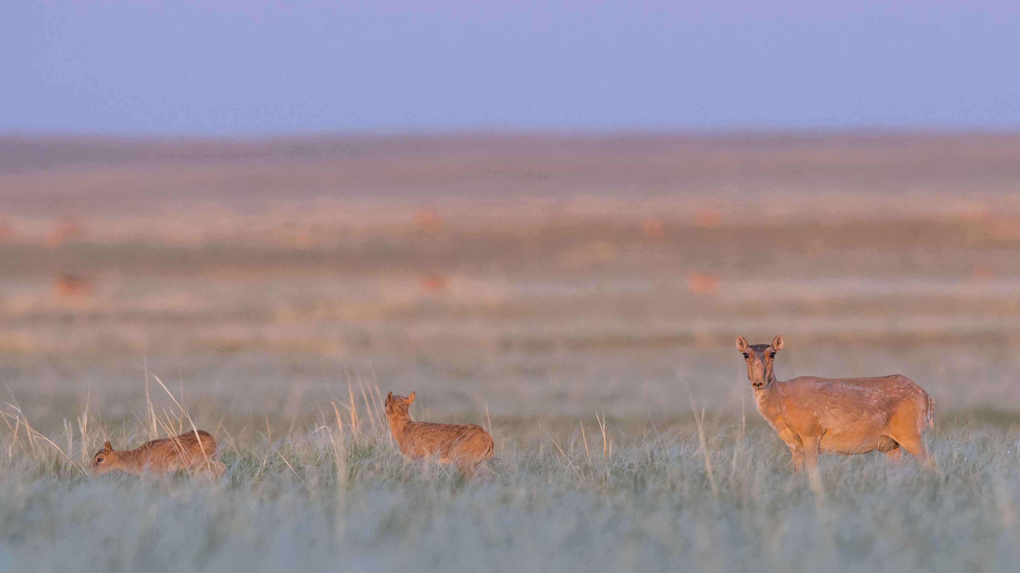 Saiga-Antilopen leben schon seit der letzten Eiszeit auf unserer Erde. Sie haben das Wollmammut und den Säbelzahntiger überlebt. Als selektive Grasfresser spielen sie eine wichtige Rolle im Ökosystem, indem sie die Vegetation beeinflussen, Nährstoffe verteilen und so die biologische Vielfalt in ihrem Lebensraum befördern. In den frühen 1990er Jahren gab es schätzungsweise eine Million Saigas in Russland und Zentralasien, aber bis 2003 war ihr Bestand stark zurückgegangen, so dass nur noch sechs Prozent der Population übrig waren.