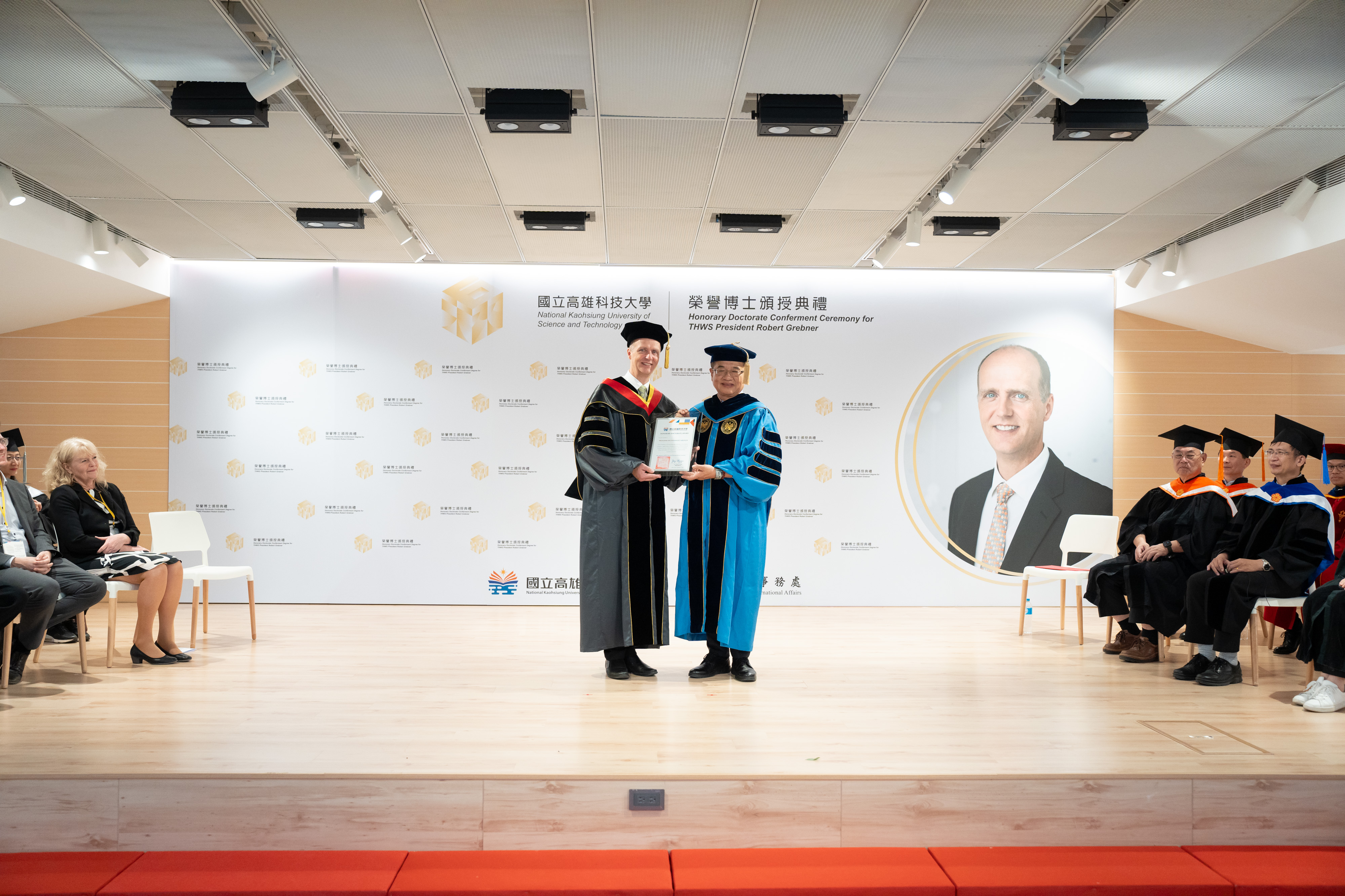 Im Rahmen eines Besuchs bei der taiwanesischen Partnerhochschule National Kaohsiung University of Science and Technology (NKUST) ist der Präsident der Technischen Hochschule Würzburg-Schweinfurt (THWS) Prof. Dr. Robert Grebner mit deren Ehrendoktorwürde (Dr. h. c.) ausgezeichnet worden. Anfang Dezember bekam er den „Honorary Doctorate Award“ von NKUST-Präsident Dr. Ching-Yu Yang überreicht. Die Technische Universität im Süden Taiwans ist eine von sechs strategischen Partnerhochschulen der THWS.