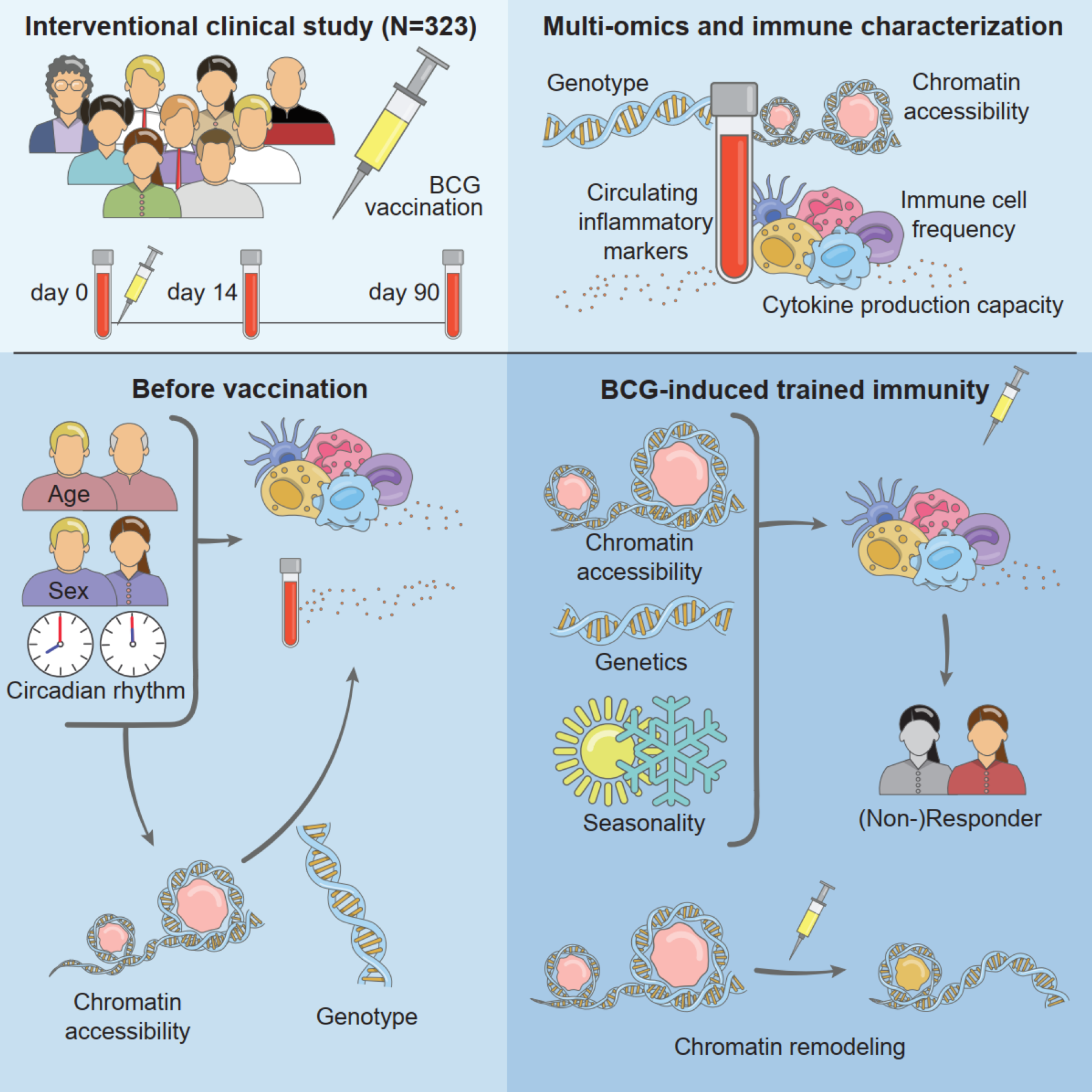 Multi-omics analysis of innate and adaptive responses to BCG vaccination reveals epigenetic cell states that predict trained immunity. Immunity, 9. Januar 2024. DOI: 10.1016/j.immuni.2023.12.005