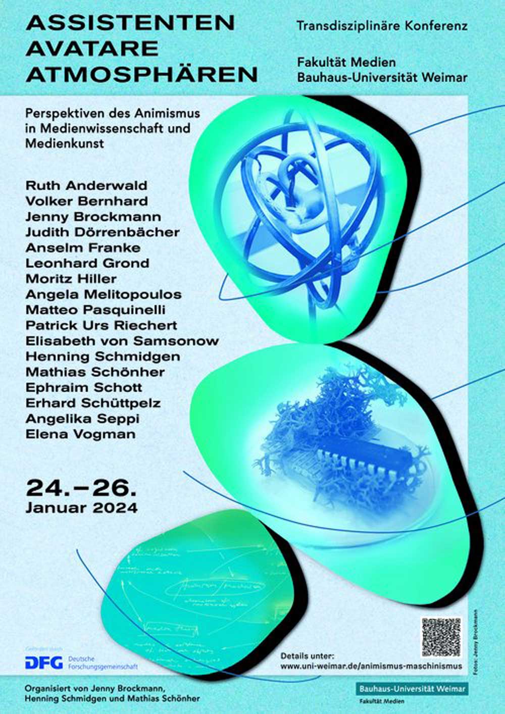 Vom 24. bis 26. Januar 2024 lädt die Professur für Medientheorie und Wissenschaftsgeschichte der Fakultät Medien an der Bauhaus-Universität Weimar zur Konferenz »Assistenten, Avatare, Atmosphären. Perspektiven des Animismus in Medienwissenschaft und Medienkunst« ein. Expert*innen diskutieren im Rahmen der Veranstaltung die Auswirkungen neuartiger Technologien auf die Erfahrung unserer Umwelt.