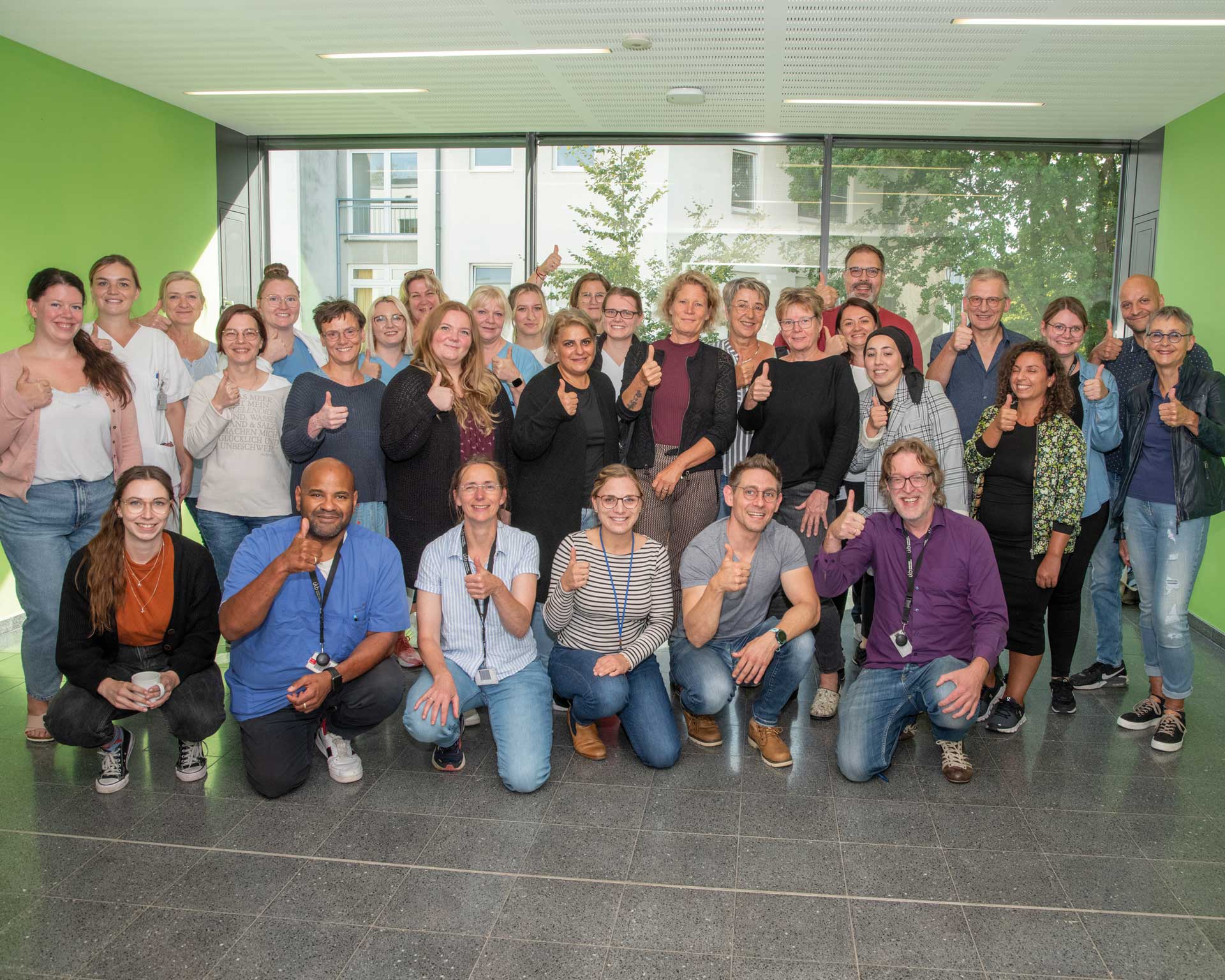 Die interprofessionelle Arbeitsgruppe am UKB wurde anfangs mit den international geprägten Anforderungen im Magnet-Konzept herausgefordert, denn deren Übertragung auf ein deutsches Krankenhaus ist aufgrund der Unterschiede in den Bildungssystemen, Tätigkeitsprofilen und Gesundheitssystemen nicht eins zu eins möglich. So ist der Anspruch einer vollständig akademischen Pflege in Deutschland so derzeit noch nicht realisierbar. „Jedoch konnten wir andere Aspekte wie eine Änderung der Führungskultur sowie die Ausrichtung an der Patienten- und Mitarbeiterzufriedenheit schrittweise umsetzen. Beispiele sind eine Patientenbefragung auf Basis einem vergleichenden Benchmarking sowie erste Schritte zur direkten Beteiligung klinisch tätiger Pflegefachpersonen an Entscheidungsprozessen“, sagt Kocks. Im kommenden Jahr stehen regelmäßige Mitarbeiterbefragungen sowie geteilte Führungsstrukturen auf Pilotstationen auf dem Plan. Seit Neuestem tragen Magnet-Multiplikatoren regelmäßig Impulse aus der Magnet-Hospital AG in die jeweiligen Station-Teams.