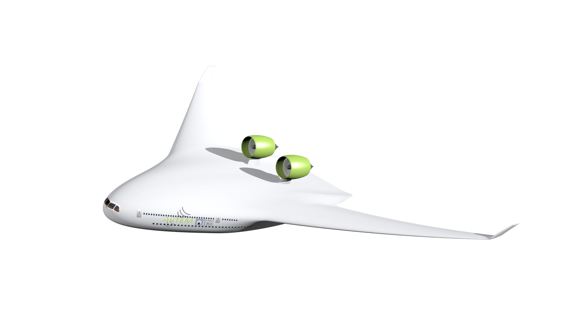 Dieses Knowhow nutzten Reto Pieren, Axel Heusser und Beat Schäffer von der Abteilung «Akustik / Lärmminderung» auch im europäischen Projekt «ARTEM» («Aircraft Noise Reduction Technologies and related Environmental iMpact», siehe Infobox), in dem zahlreiche Partner Konzepte für lärmarme Langstreckenflugzeuge entwickelten – mit einem eigens entworfenen «Blended Wing Body» (BWB) und unterschiedlichen Triebwerkvarianten.