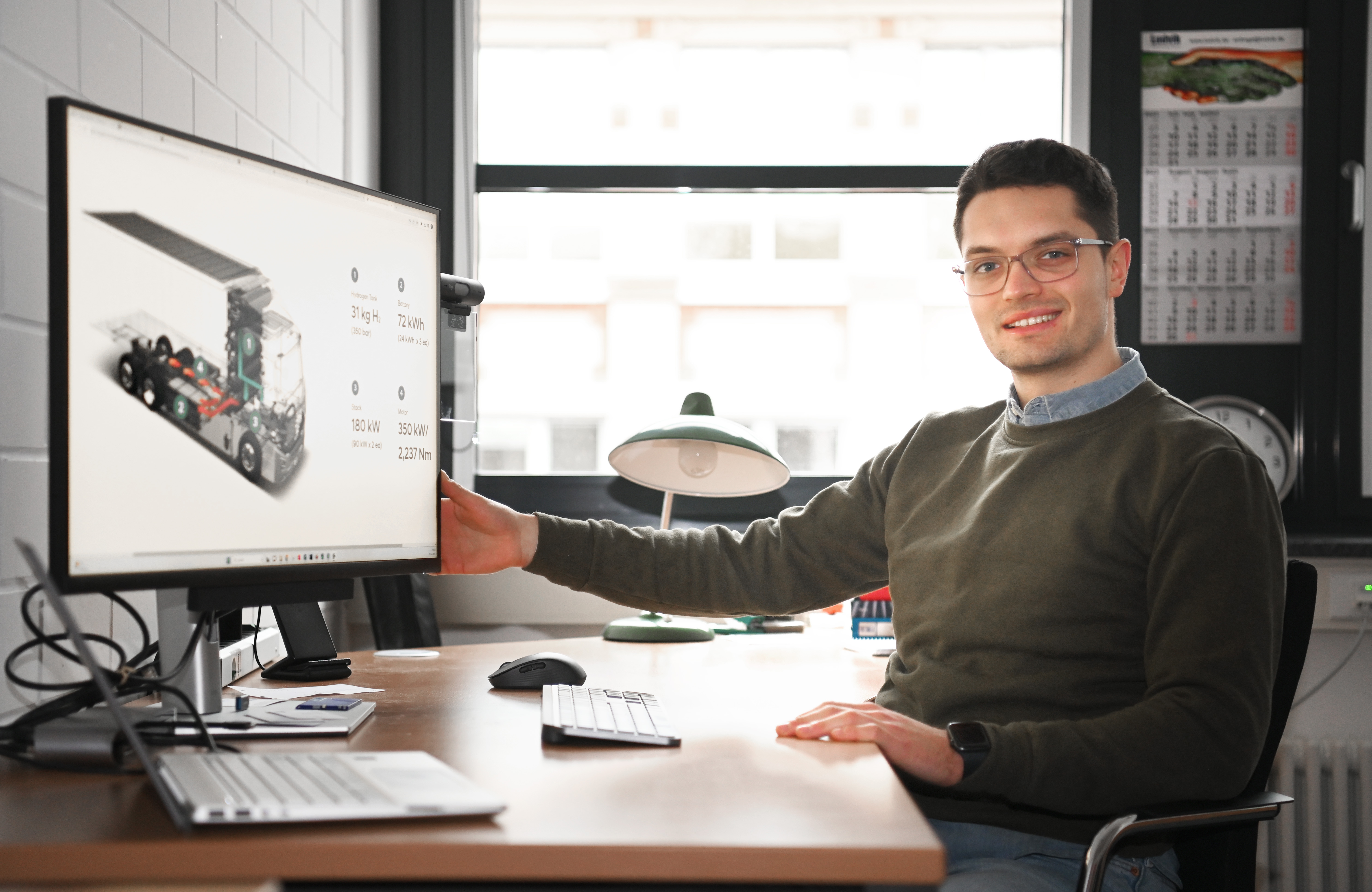 Wie die Komponenten eines Doppel-Brennstoffzellenantriebs eines LKW so aufeinander abgestimmt werden müssen, damit sie möglichst sparsam und trotzdem leistungsfähig arbeiten, hat der Recklinghäuser Felix Smyrek in seiner Bachelorarbeit an der FH Dortmund untersucht. Sein Ergebnis unterstreicht die Sinnhaftigkeit von Brennstoffzellenantrieben in LKW.