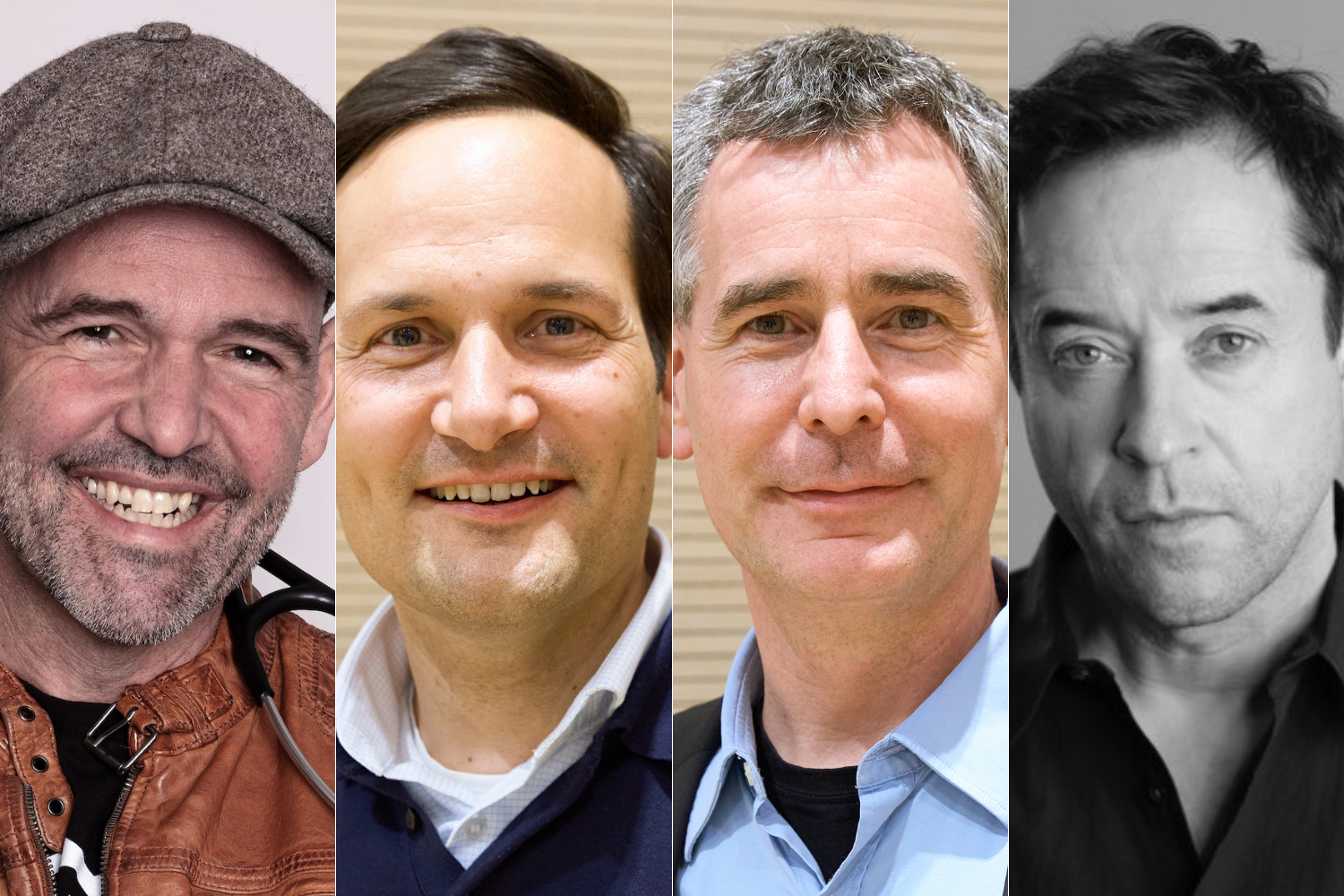 Bildunterschrift: Das Programm zum Pneumologie-Kongress steht. Mit dabei sind unter anderem (v.l.): WDR-Moderator Dr. Heinz-Wilhelm Esser, auch bekannt als Doc Esser, die beiden Kongresspräsidenten Dr. Hubert Schädler und Professor Michael Kreuter sowie der Tatort-Schauspieler Jan Josef Liefers.