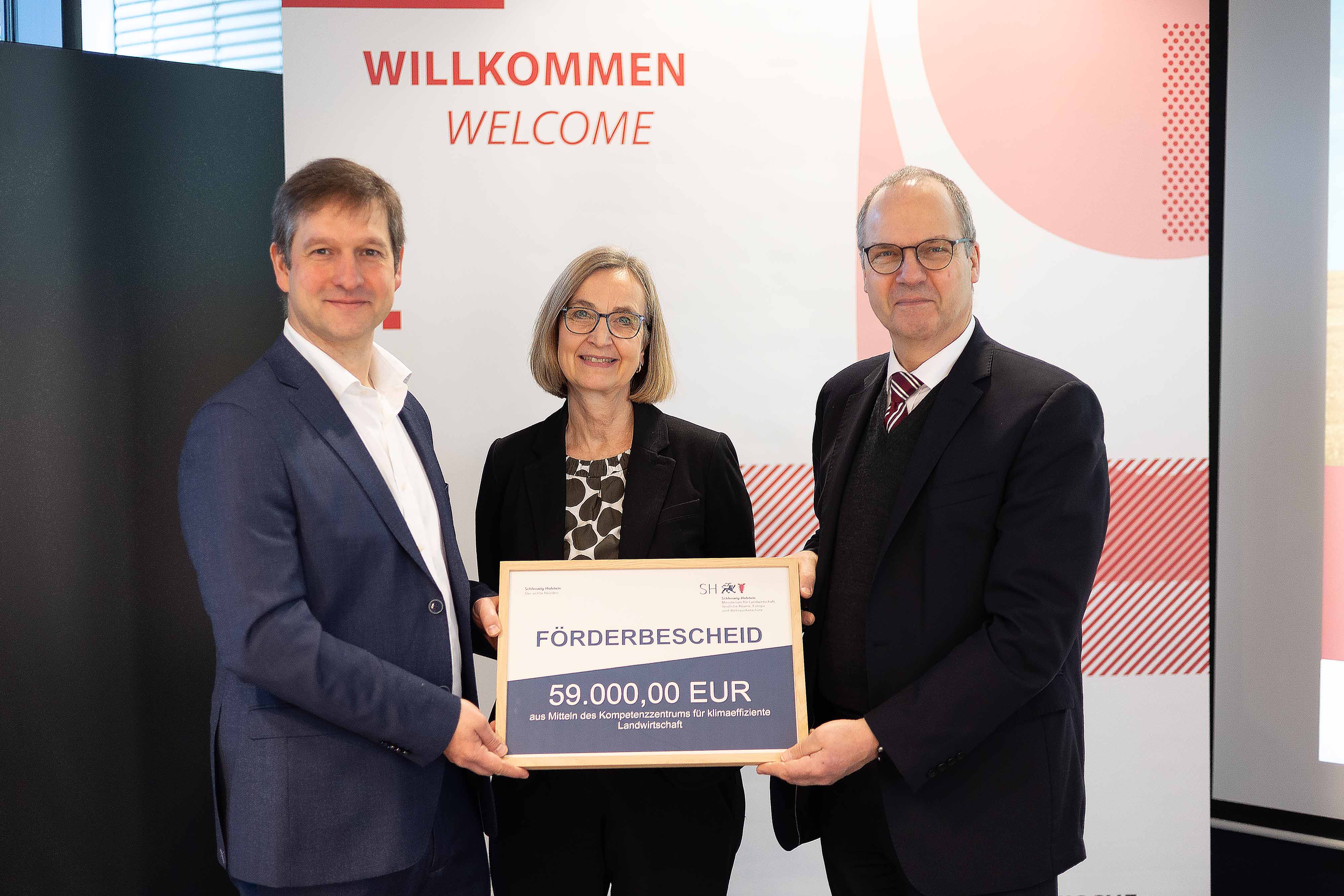 Um Herauszufinden, wie in Zukunft Erneuerbare Energien in der Landwirtschaft genutzt werden können, hat das Kompetenzzentrum für klimaeffiziente Landwirtschaft ein neues Gutachten auf den Weg gebracht. Ziel ist es, Modellszenarien für eine post-fossile Landwirtschaft in Schleswig-Holstein zu untersuchen. Erstellt wird das Gutachten vom Fachbereich Angewandte Naturwissenschaften der Technischen Hochschule Lübeck. Landwirtschaftsminister Werner Schwarz überreichte heute (8. Februar) einen Förderbescheid in Höhe von rund 59.000 Euro an die Vizepräsidentin für Forschung und Internationales der Technischen Hochschule Lübeck, Professorin Dr. Karen Cabos.