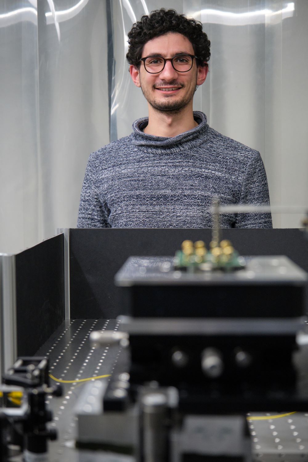 Erstautor der Studie ist Mohammad T Amawi vom Institut für Physik der Universität Rostock. Seiner Arbeitsgruppe ist es gelungen, mit Hilfe von dreidimensionaler magnetischer Resonanztomografie, ein dreidimensionales Bild der Positionen einzelner Atome in einem Diamantkristall aufzunehmen – eine Wolke aus Punkten, vergleichbar mit einem Sternhaufen am Nachthimmel (Foto: Institut für Physik/Universität Rostock).