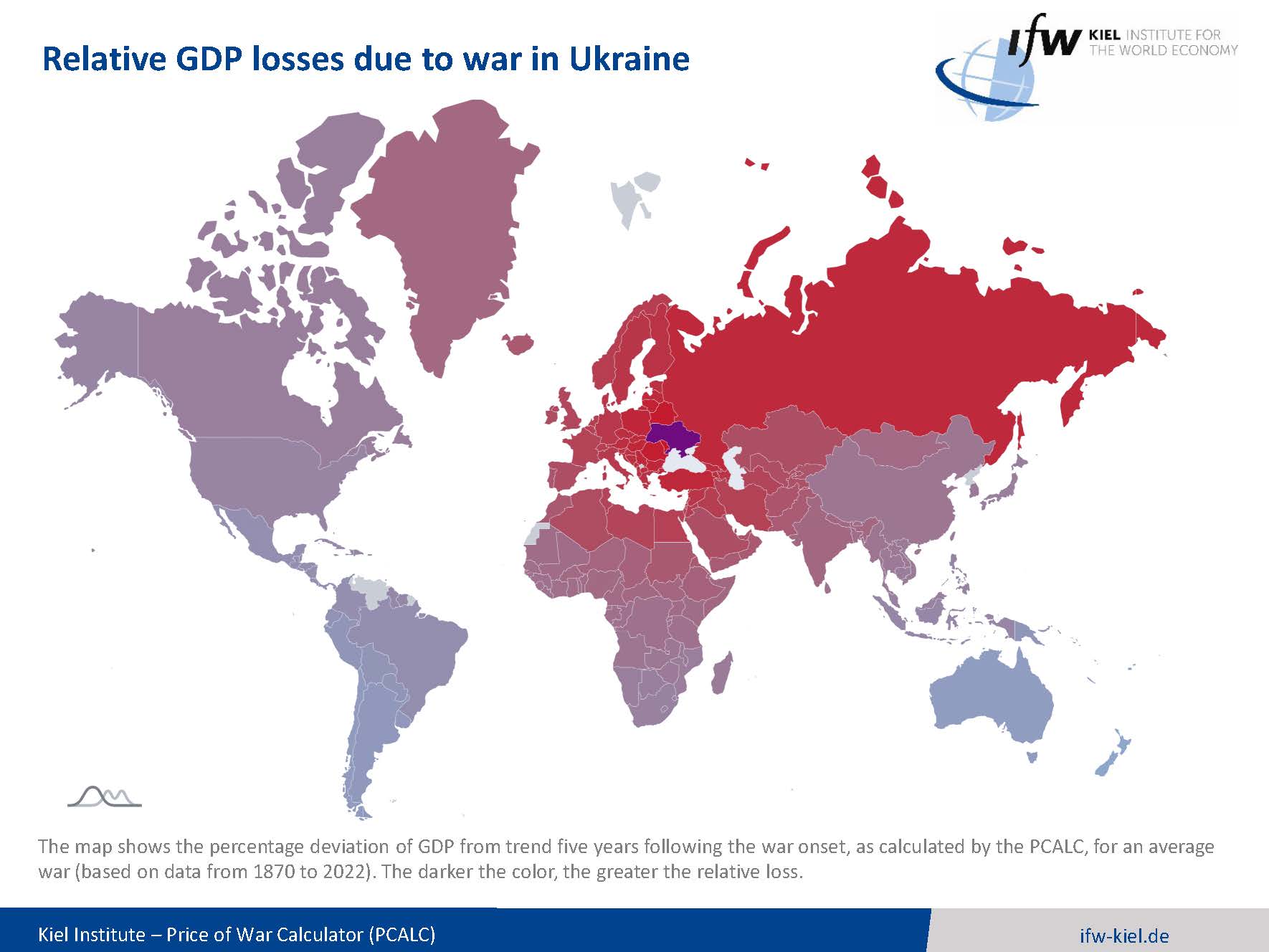 Our new online tool, the Price of War Calculator (PCALC), is freely available at https://priceofwar.org/. It provides a simple way to calculate the economic impact of hypothetical wars in war sites and their spillovers to other countries. The tool is based on the study “The Price of War” (https://www.ifw-kiel.de/publications/the-price-of-war-32527/) (Federle et al., 2024) and thus condenses the historical experience of the last 150 years. New or hypothetical war scenarios can deviate from the historical average in various ways. As such, the calculations can only be regarded as a ballpark rather than a precise estimate.