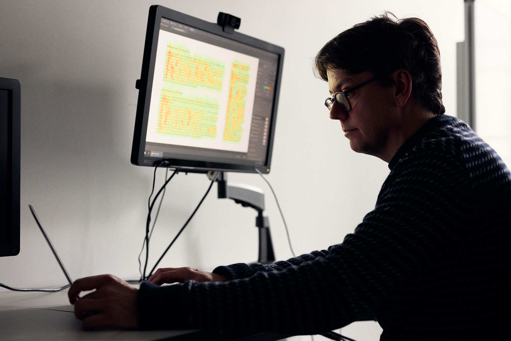 Zurück ins Labor: Der Eyetracker verfolgt die Augenbewegungen der Studienteilnehmerin. Durmaz erklärt das Vorgehen: „Unsere Probenanden wissen vorher nicht, worum es bei der Studie geht. Ich lasse sie alle Artikel in Ruhe lesen, das dauert meist etwa eine halbe Stunde. Wenn sie mit dem Lesen fertig sind, beantworten die Teilnehmenden noch einen Fragebogen.“ Anschließend fängt für Durmaz die Arbeit an: Dann sichert sie die Daten, wertet die Fragebögen aus und speist die Aufzeichnungen aus dem Eyetracker in ihre Datenbank ein. Die Forschungsfrage, die Durmaz beantworten möchte, lautet: Beeinflusst eine Stellungnahme einer muslimischen Organisation über einen Anschlag, ob sich die Leserinnen und Leser länger einem positiven oder negativen Bericht über Muslime widmen?