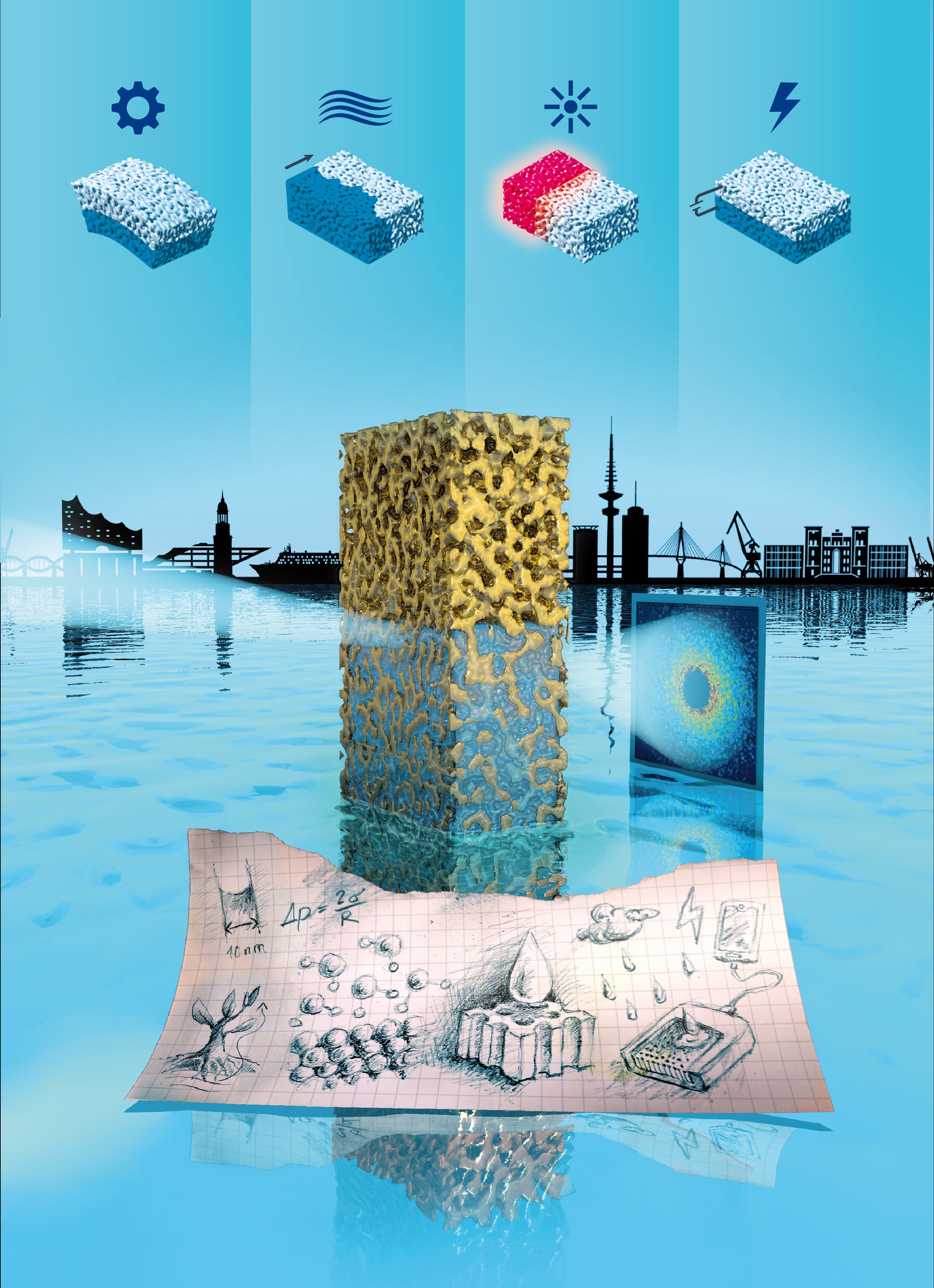 Künstliche Materialien sind in der Regel aus komplexen chemischen Verbindungen zusammengesetzt und oft nicht nachhaltig. Das an der TU Hamburg angesiedelte Exzellenzcluster „BlueMat: Water Driven Materials“ verfolgt den weltweit einzigartigen Ansatz, eine neue Art nachhaltiger Materialien zu entwickeln, die durch Wechselwirkung bzw. Kontakt mit Wasser ganz neue Eigenschaften entwickeln und von der Natur inspiriert sind. Diese könnten perspektivisch etwa zur Entwicklung smarter Fenster, bei der Wärmedämmung für energieeffiziente Architektur sowie zur Gewinnung und Speicherung elektrischer Energie aus Umweltprozessen zum Einsatz kommen.