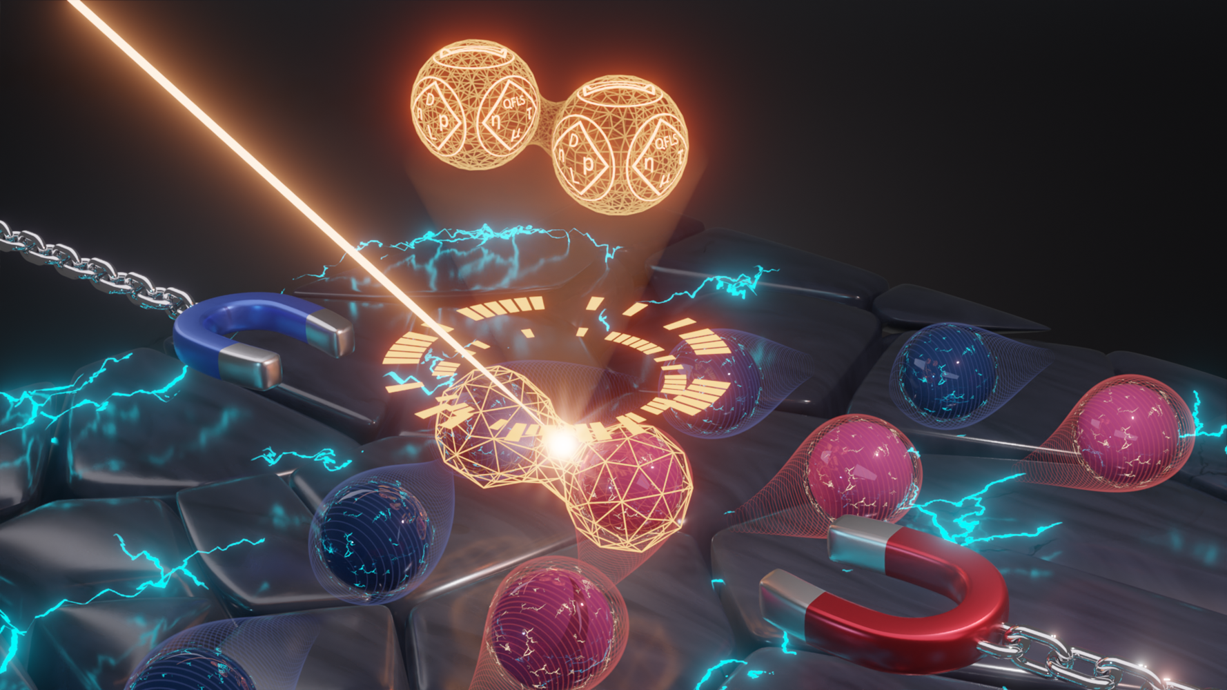 Der HZB-Physiker Dr. Artem Musiienko hat nun im Rahmen seiner „Maria Skłodowska Curie Postdoctoral Fellowship“ eine neue Methode entwickelt, die in einer Messung alle 14 Parameter der positiven wie negativen Ladungsträger erfassen kann. Dafür nutzt er ein Magnetfeld, das senkrecht durch die Probe dringt und eine konstante Lichtquelle für die Ladungstrennung. Die freigesetzten Ladungen wandern entlang eines elektrischen Felds und werden durch das Magnetfeld senkrecht zu ihrer Bewegungsrichtung abgelenkt, wobei ihre Masse, ihre Mobilität und weitere Eigenschaften eine Rolle spielen. Aus den Signalen und insbesondere auch den Differenzen zwischen den Signalen der unterschiedlichen Ladungsträger lassen sich insgesamt 14 verschiedene Eigenschaften ermitteln, zeigte Musiienko mit einem übersichtlichen System aus Gleichungen.