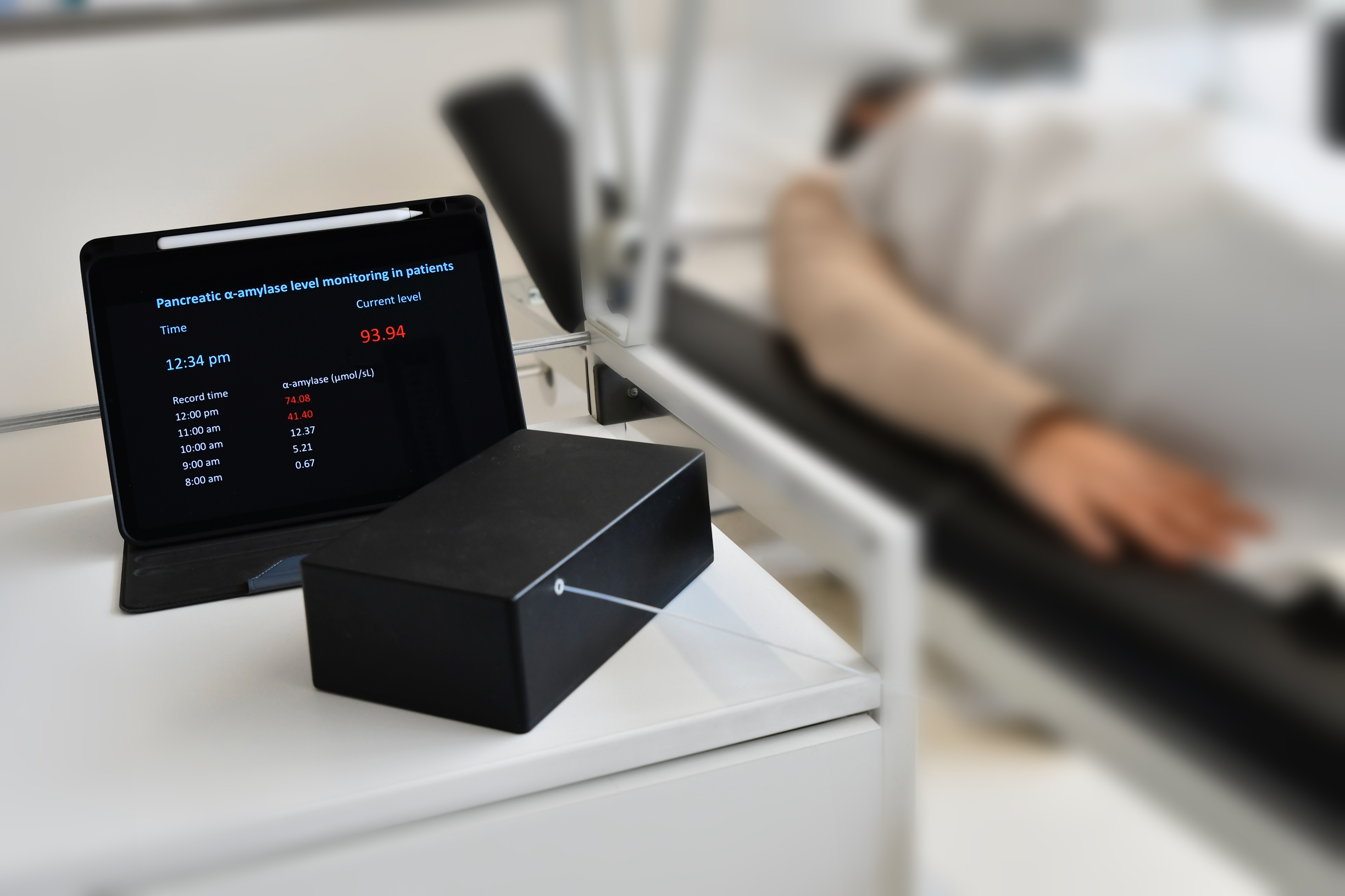 Komplikationen nach Operationen an der Bauchspeicheldrüse sind häufig und können lebensbedrohlich sein. Eine der schwersten und zugleich häufigsten Komplikationen ist die postoperative Pankreasfistel. Diagnostiziert wird sie anhand erhöhter Konzentrationen des Bauchspeicheldrüsenenzyms Alpha-Amylase in den Drainagesekreten. Derzeit wird die Analyse dieser Enzyme standardmäßig nur am ersten und dritten postoperativen Tag durchgeführt. Wissenschaftler*innen des Helmholtz-Zentrums Dresden-Rossendorf (HZDR) und des UKD berichten nun im Fachblatt Biosensors and Bioelectronics über die Entwicklung eines portablen Gerätes, das die Enzymbestimmung kontinuierlich und in Echtzeit durchführen kann.