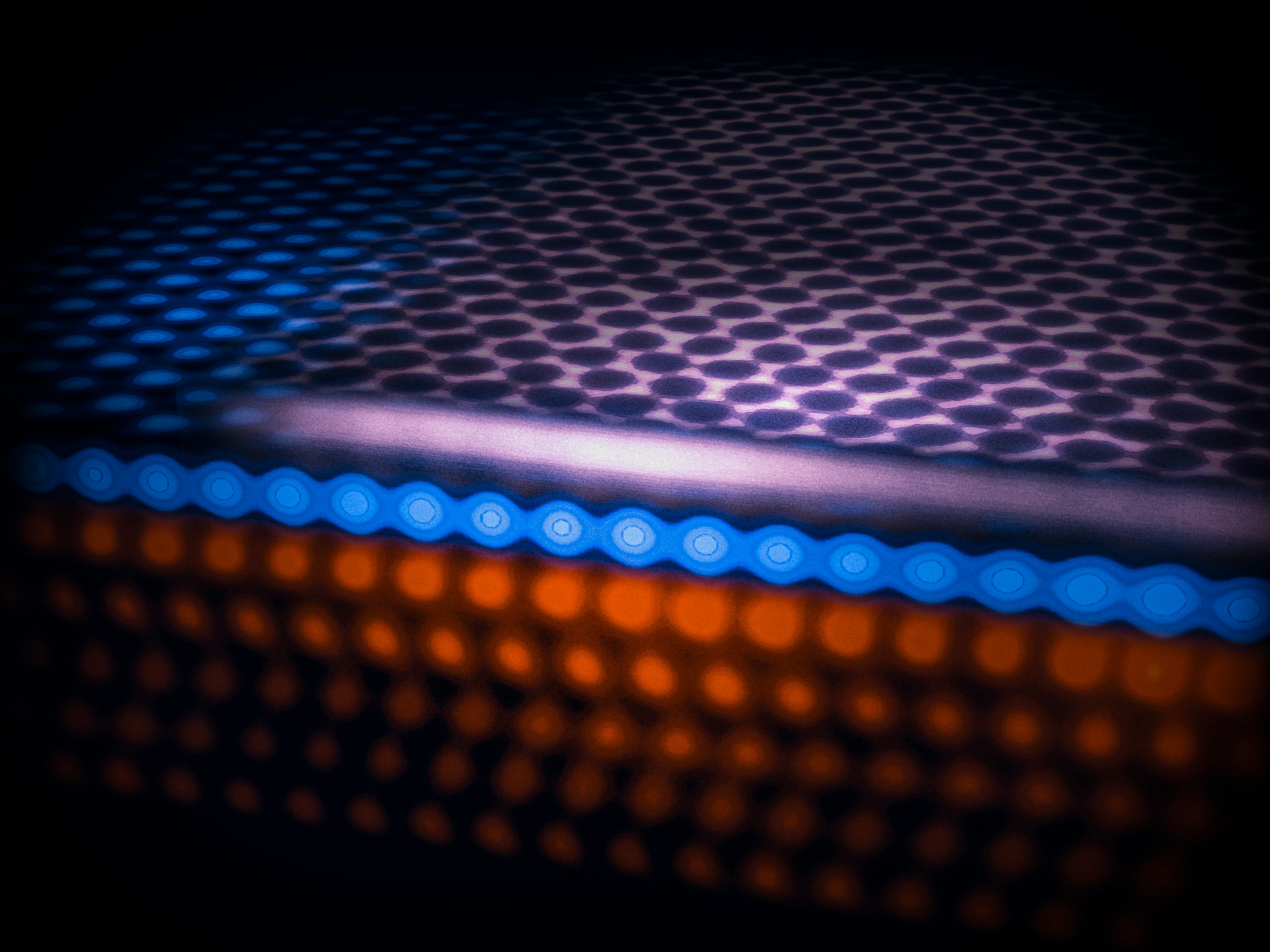 In einer aufwändigen Ultrahochvakuum-Apparatur hat das Würzburger Forschungsteam schließlich Siliziumkarbid (SiC) als Trägermaterial für Indenen erhitzt – und untersucht, unter welchen Bedingungen daraus Graphen entsteht. „Siliziumkarbid setzt sich aus Silizium und Kohlenstoff zusammen. Beim Erhitzen lösen sich die Kohlenstoffatome aus der Oberfläche und bilden Graphen“, beleuchtet Doktorand Schmitt das Geschehen im Labor. „Anschließend haben wir Indium-Atome aufgedampft, die zwischen die schützende Graphen- und die tragende Karbid-Schicht getaucht sind. So ist die Schutzschicht für unser zweidimensionales Quantenmaterial Indenen entstanden.“