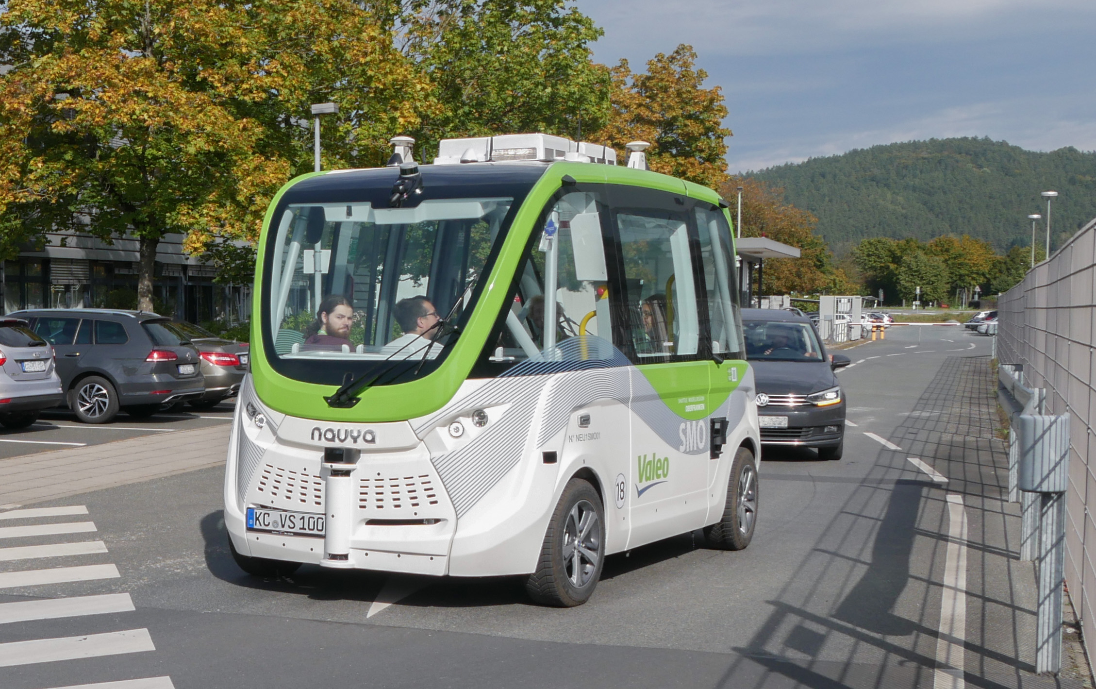 Oberfranken ist eine führende Region in der Forschung zum Autonomen Fahren. Die Hochschule Coburg ist am Studienort Kronach nicht nur mit dem Master Autonomous Driving (Master of Engineering) vertreten, sondern auch am Projekt Shuttle-Modellregion Oberfranken (SMO) beteiligt, das vom Bundesministerium für Digitales und Verkehr gefördert wird. Hier werden in Modellkommunen verschiedene Anwendungsszenarien automatisierter Shuttlebusse untersucht. Die Hochschule Coburg widmet sich dabei unter anderem Aspekten wie Bürgerbeteiligung und Sicherheit. Dazu gab es Ende vergangenen Jahres eine Versuchsfahrt mit 25 Bürgerinnen und Bürgern auf dem Firmengelände von Valeo in Kronach-Neuses, dem Konsortialführer des SMO-Projekts. Der Shuttlebus war vollautomatisiert unterwegs, ohne Begleitpersonal, das hätte eingreifen können. Dabei wurden alltägliche Verkehrssituationen nachgestellt: beispielsweise eine starke Bremsung an einem Fußgängerüberweg und das Kreuzen eines Scooterfahrers.