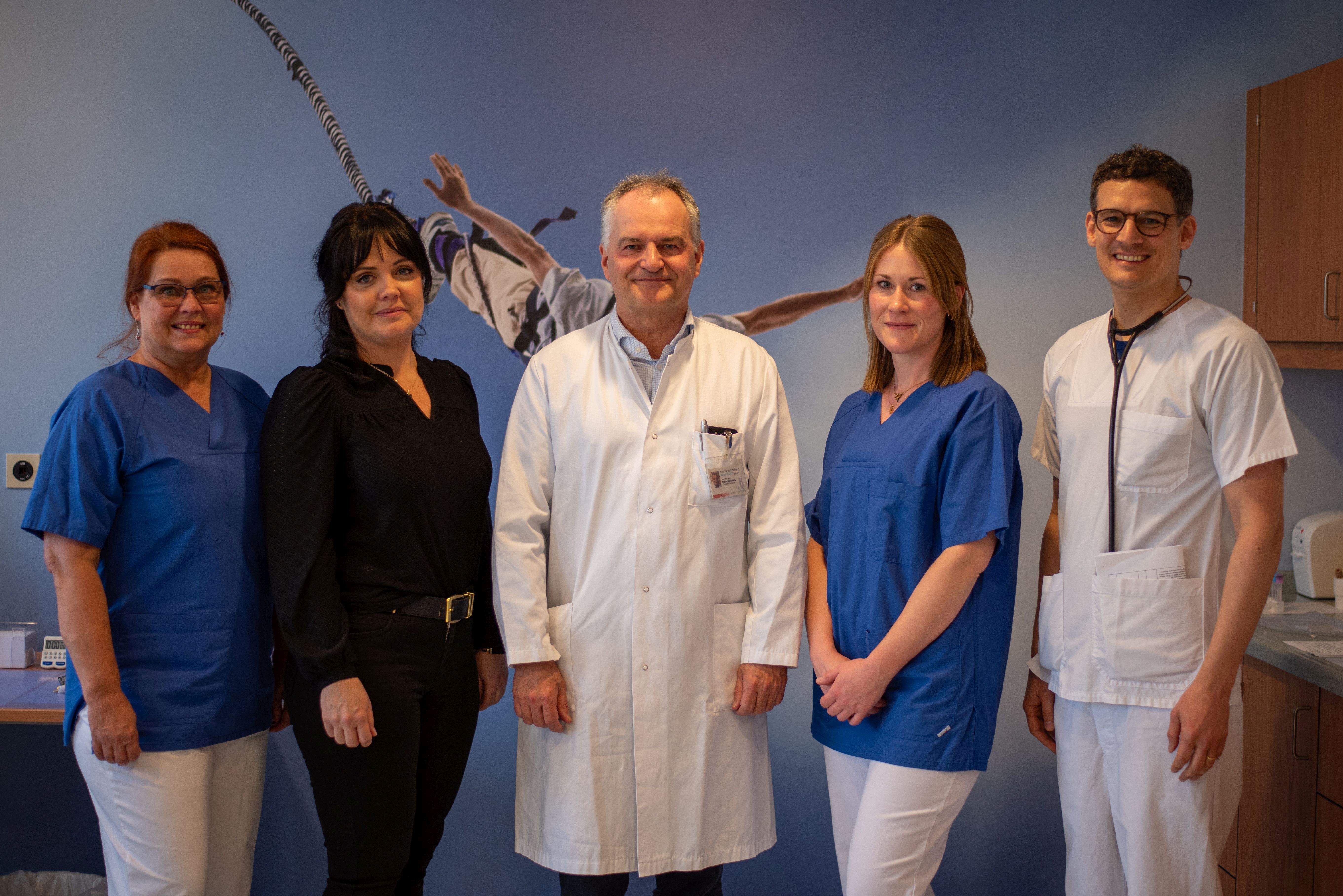 Wollen jetzt durchstarten – das Studienteam MV-Fit (nicht vollständig): Heike Kynast (v.li. Studienschwester), Dr. Julia Rüdebusch (Projektkoordinatorin), Prof. Maik Gollasch (Studienleiter), Sophie Oldag (Leitende Studienschwester) und Oberarzt Dr. Marwan Mannaa.