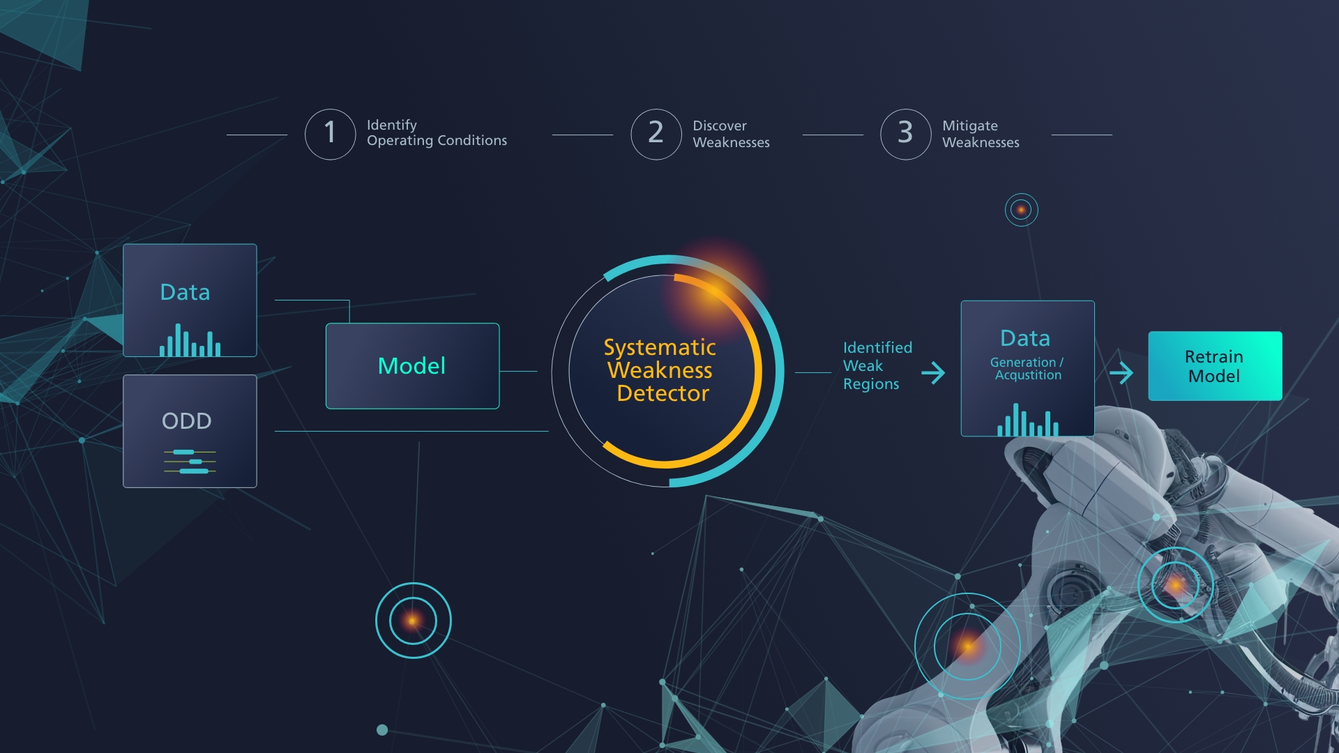 Ein solches Anwendungsbeispiel ist ein Prüfwerkzeug für KI-Modelle, die in der Produktion sowie im Maschinen- und Anlagenbau eingesetzt werden. Das Tool ermöglicht die systematische Schwachstellensuche von KI-Systemen, um so deren Zuverlässigkeit und Robustheit sicherzustellen. »Unsere Methodik beruht darauf, den Anwendungsbereich des KI-Systems genau zu spezifizieren. Konkret geht es darum, den Raum der möglichen Eingaben, die das KI-System verarbeitet, zu parametrisieren und mit einer semantischen Struktur zu versehen. Mit den KI-Prüfwerkzeugen, die wir unter anderem im KI.NRW-Flagships-Projekt ›Zertifizierte KI‹ entwickelt haben, lassen sich dann Fehler der KI-Systeme erkennen«, erklärt Poretschkin.