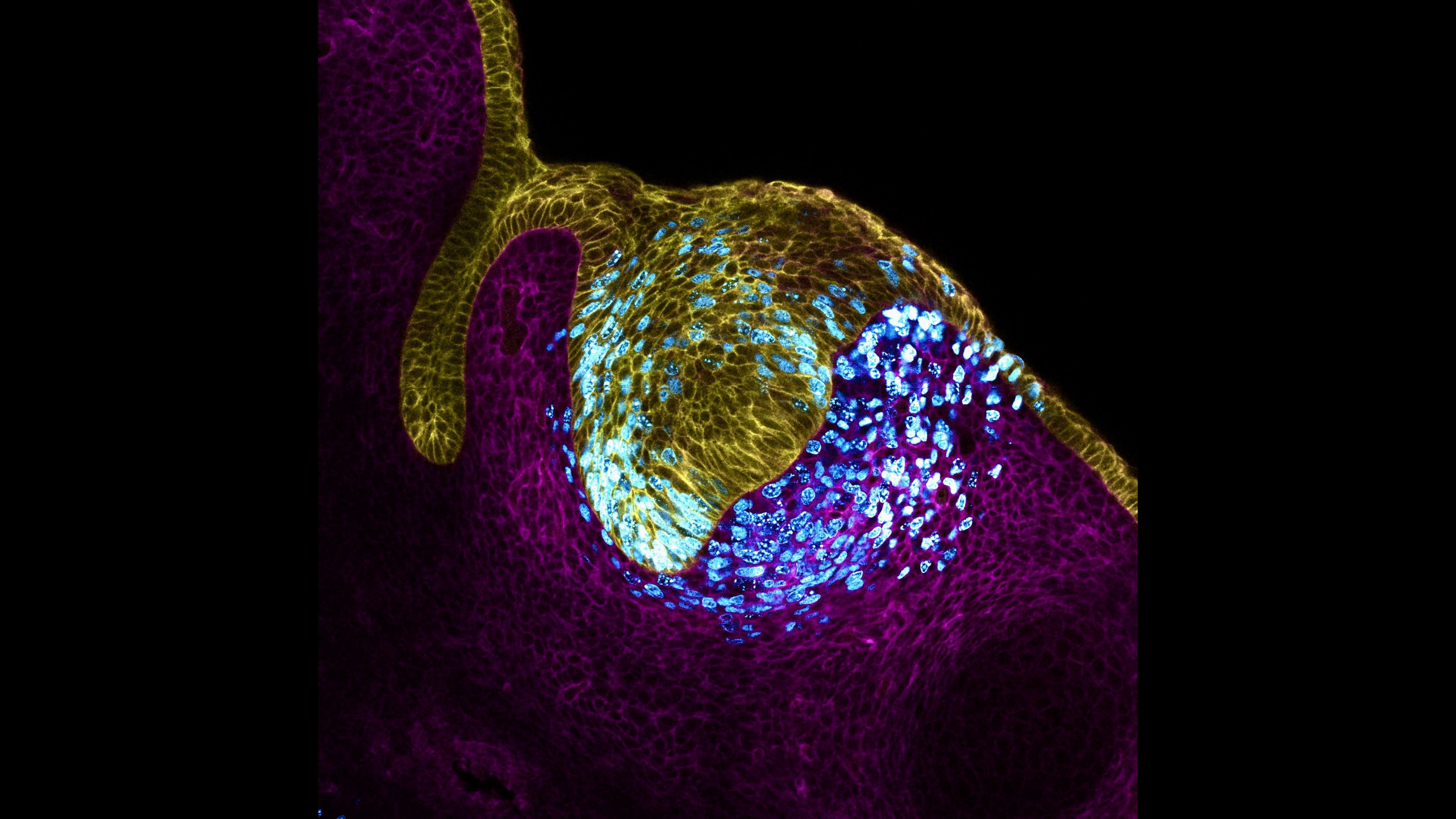 Die Studie, die heute (3. April 2024) in Nature Cell Biology veröffentlicht wurde, zeigt, dass die embryonalen Schneidezahnzellen beim Wachstum den steigenden Druck spüren und diese Information nutzen, um sich zu organisieren. "Im Schneidezahnknoten vermehren sich die Zellen auf engem Raum“, beschreibt Dr. Neha Pincha Shroff, Postdoktorandin an der School of Dentistry der UCSF und Mitautorin der Studie. „Dadurch wird ein Druck in der Mitte aufgebaut, der sich dann zu einem Cluster spezialisierter Zellen entwickelt – dem Organisatorbereich."