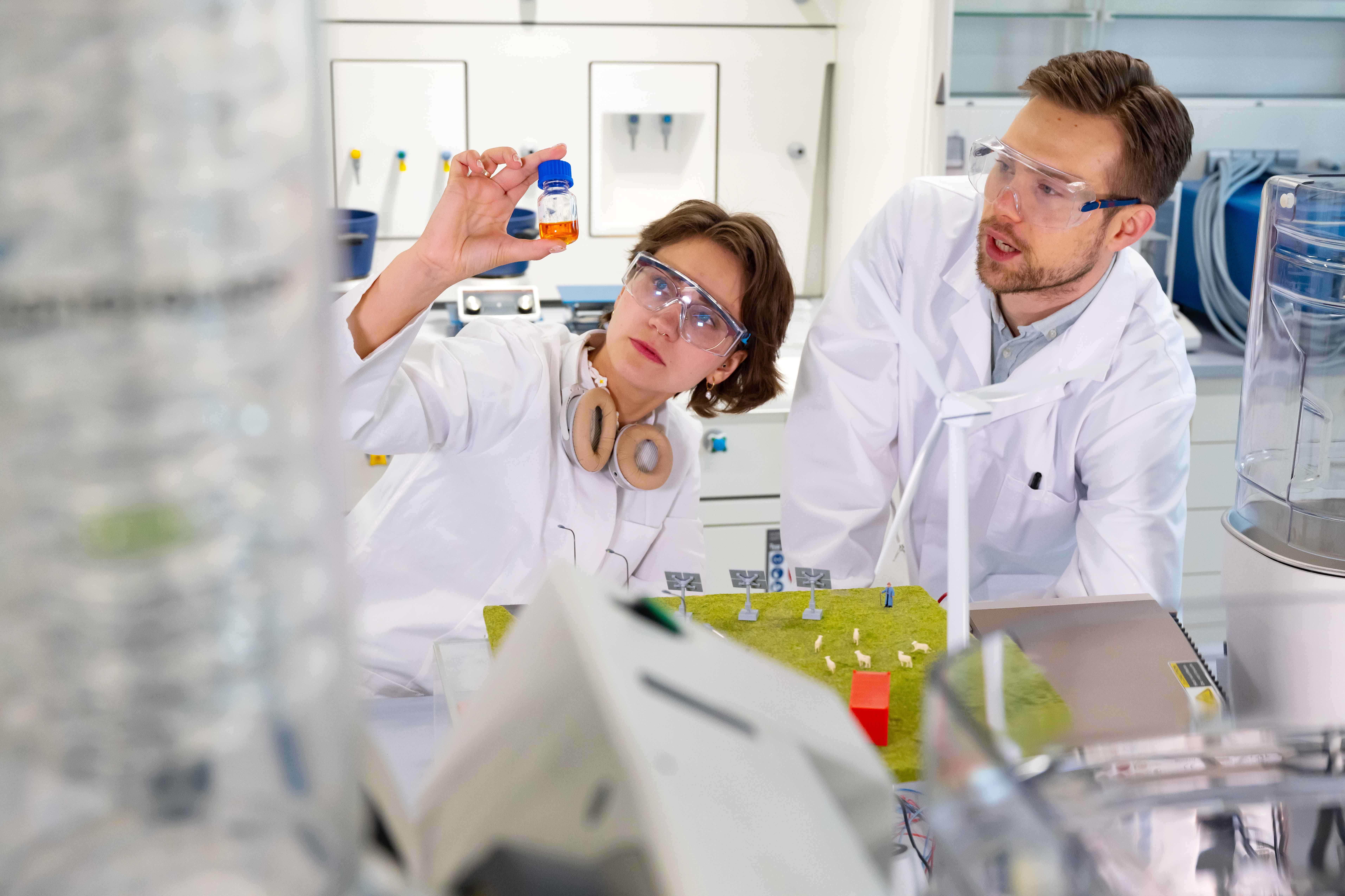 The new building with its two parts comprises a total of 4,000 square metres of usable space and hoeses over 40 offices and 60 laboratories. A technical centre for upscaling and large devices was set up in the application centre. It is now possible to bring research results closer to possible later production and to produce and process larger quantities of the desired materials on site.