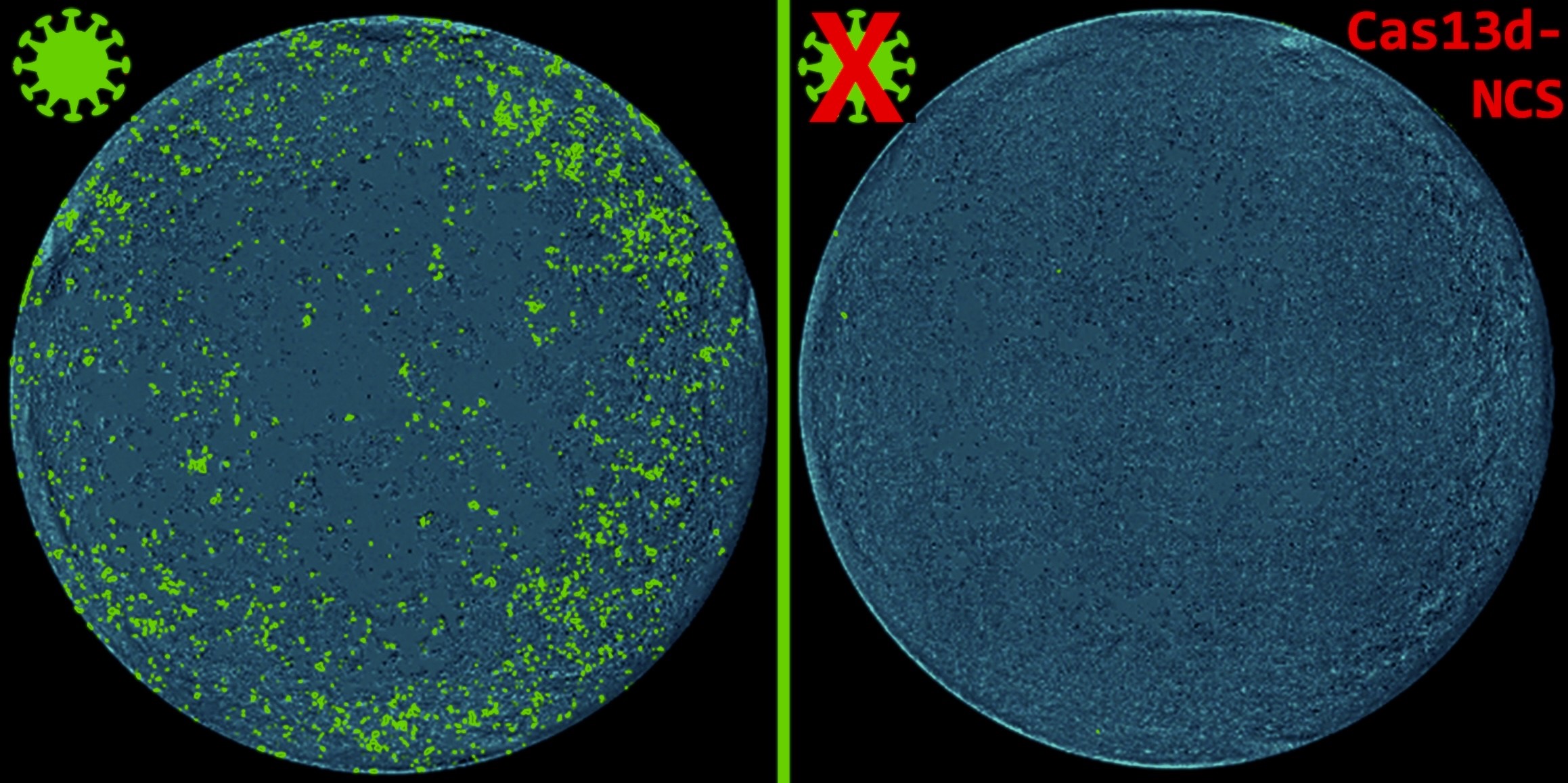 A scientific team around Prof. Wolfgang Wurst, Dr. Christoph Gruber and Dr. Florian Giesert (Institute of Developmental Genetics at Helmholtz Munich and Chair of Developmental Genetics at TUM), which intensively collaborated with the teams of Dr. Gregor Ebert (Institute of Virology at Helmholtz Munich and at TUM) and of Prof. Andreas Pichlmair (Institute of Virology at TUM), successfully overcame this challenge associated with the cytosolic inactivity of Cas13d. Through careful screening and optimization, the researchers developed a transformative solution: Cas13d-NCS, a novel system capable of transferring nuclear crRNAs into the cytosol. crRNAs, or CRISPR RNAs, are short RNA molecules that guide the CRISPR-Cas complex to specific target sequences for precise modifications. In the cytosol, the protein/crRNA complex targets complementary RNAs and degrades them with unprecedented precision. With remarkable efficiency, Cas13d-NCS outperforms its predecessors in degrading mRNA targets and neutralizing self-replicating RNA, including replicating sequences of Venezuelan equine encephalitis (VEE) RNA virus and several variants of SARS-CoV-2, unlocking the full potential of Cas13d as a programmable antiviral-tool.