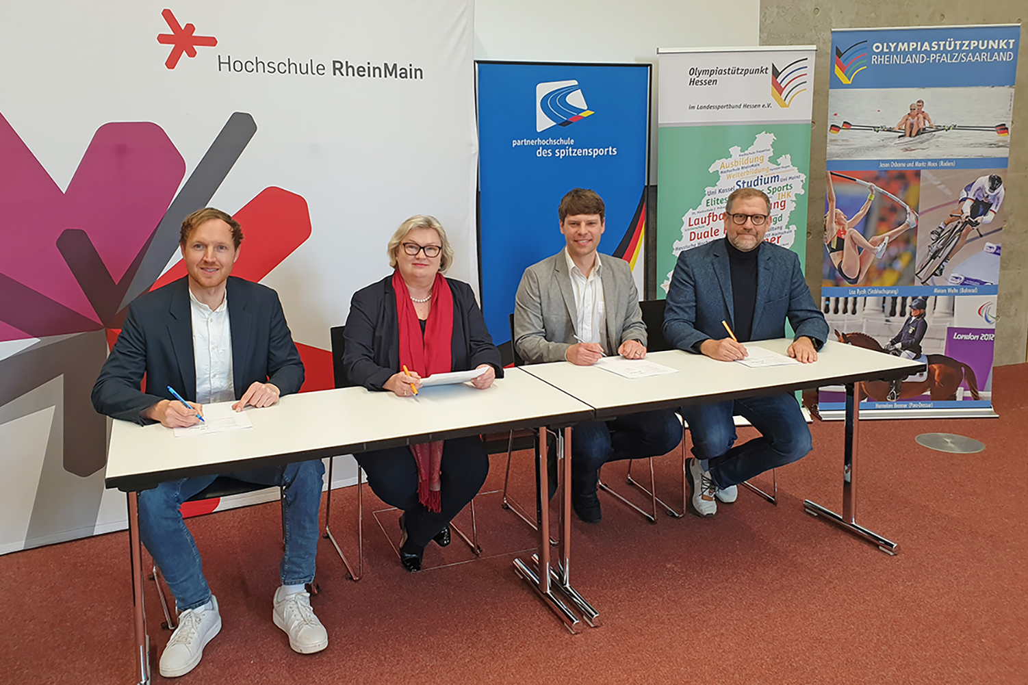 Die Hochschule RheinMain (HSRM), der Olympiastützpunkt Hessen im Landessportbund Hessen e. V. und der Allgemeine Deutsche Hochschulsportverband (adh) haben ihre Kooperation um den Olympiastützpunkt Rheinland-Pfalz/Saarland erweitert. Damit baut die HSRM ihre Position als offizielle Partnerhochschule des Spitzensports in der Region weiter aus. Die seit 2003 bestehende Vereinbarung ermöglicht es studierenden Spitzensportler:innen, zeitgleich eine sportliche Karriere und eine akademische Ausbildung zu verfolgen.